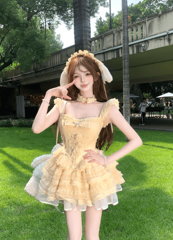 Robe d'été courte plissée en dentelle à volants et col carré pour femme, tenue de soirée et de vacances, D1965