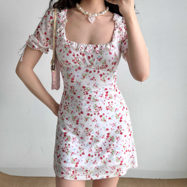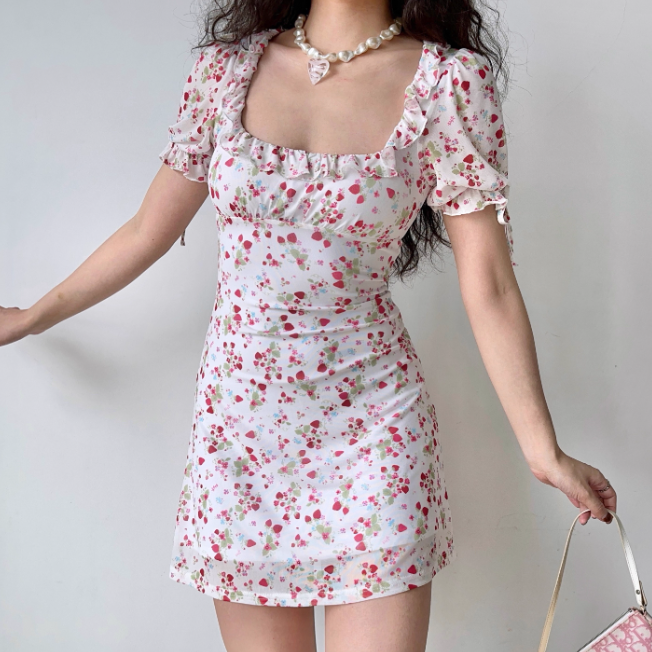 Robe élégante pour femme, col carré, imprimé à volants, tenue de vacances d'été, de bord de mer, pour adolescentes, tenue de rendez-vous, D2264