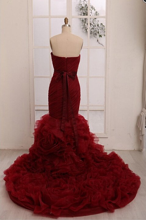 Robe de mariée sirène en organza bordeaux, col en cœur, longueur au sol, robe de bal M5566