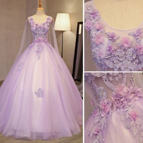 Robe de soirée longue en tulle lilas, unique, à fleurs, bouffante, robe de Quinceanera M1619