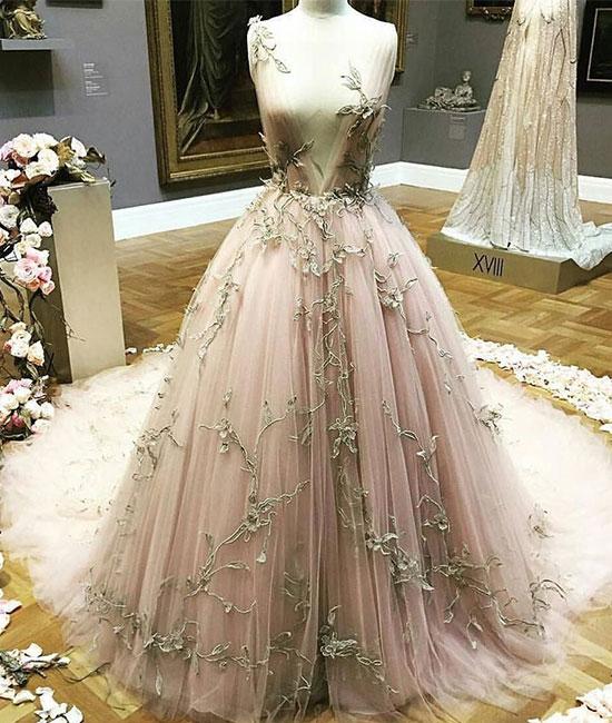 Robe de bal longue en tulle appliqué unique, robe de soirée M4825