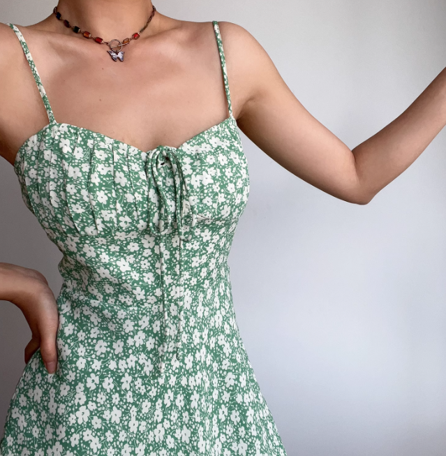 Robe d'été à bretelles spaghetti et lacets, jupe courte plissée imprimée, robe de rendez-vous D2061