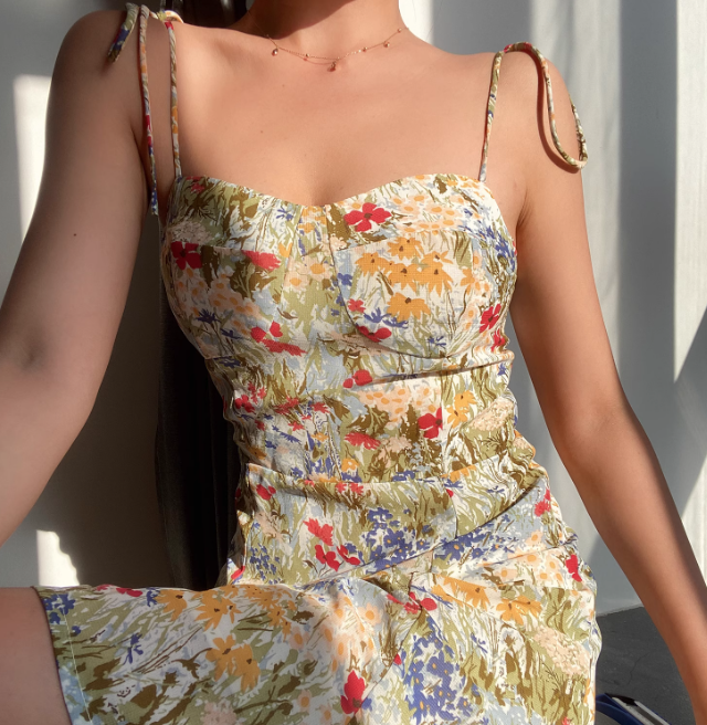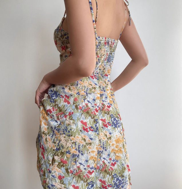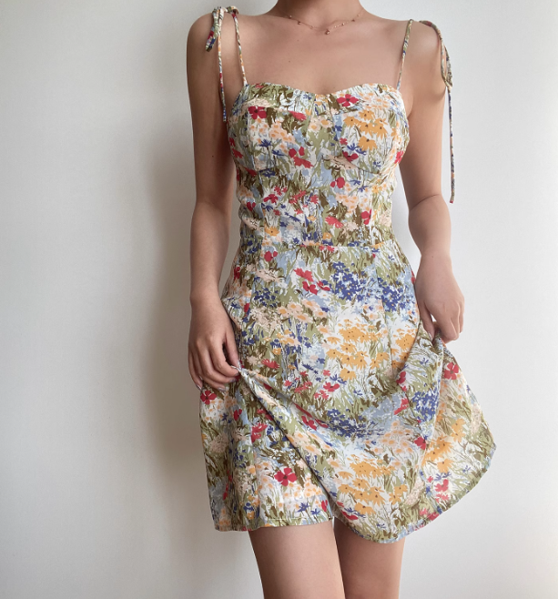 Robe de plage d'été à bretelles spaghetti et imprimé floral, jupe courte, tenue de rendez-vous pour femme, D2049