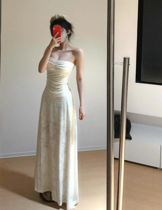 Robe longue bustier plissée à ourlet irrégulier pour femme, tenue de vacances, jupe d'été D1940