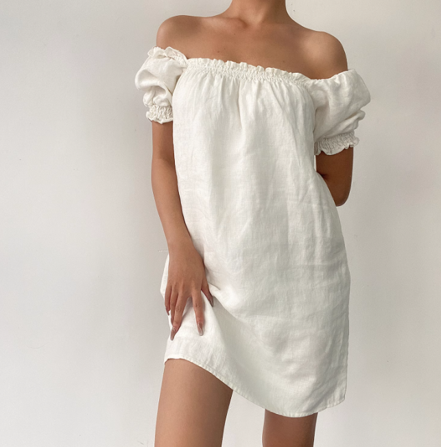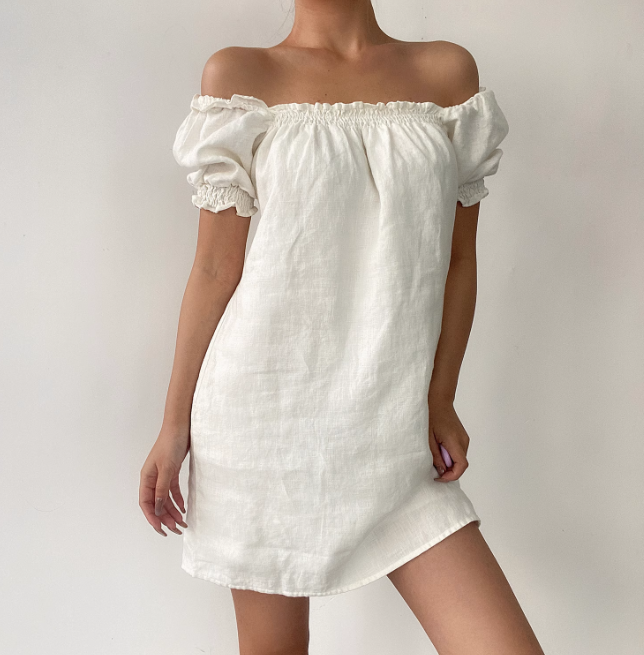 Robe d'été polyvalente à épaules dénudées et manches bouffantes, jupe courte pour femme, robe de rendez-vous D2057