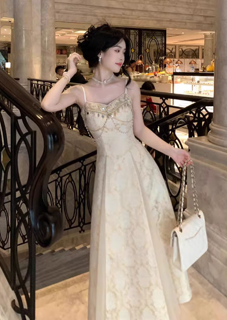 Robe vintage trapèze à bretelles spaghetti et paillettes, jupe longue imprimée, tenue d'été pour femme, D2021