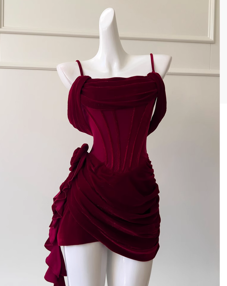Robe fourreau vintage bordeaux à bretelles spaghetti, robe de soirée, robe de bal, D1337