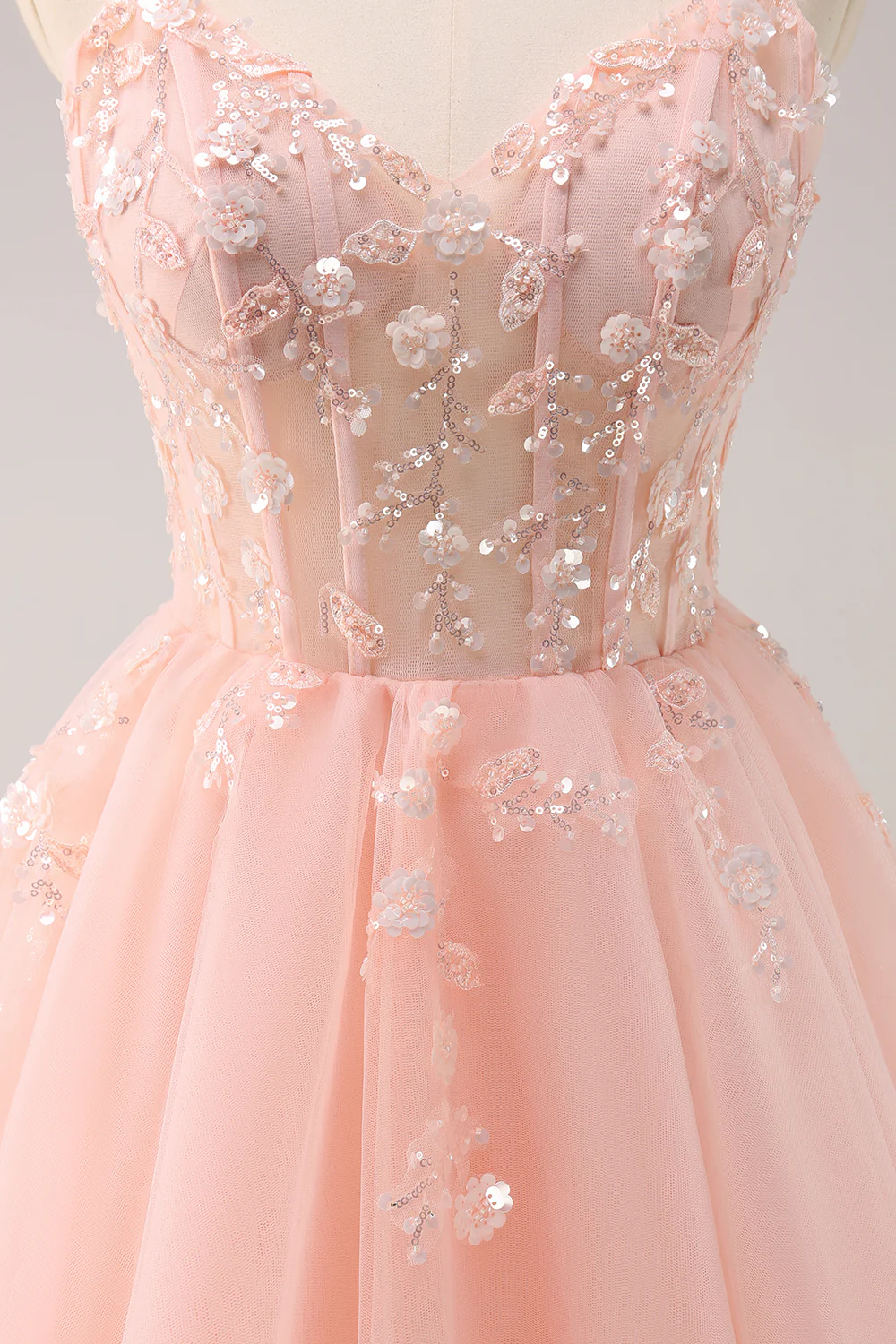 Robe de soirée trapèze sans manches à bretelles spaghetti, motif floral 3D rose vintage, D1369