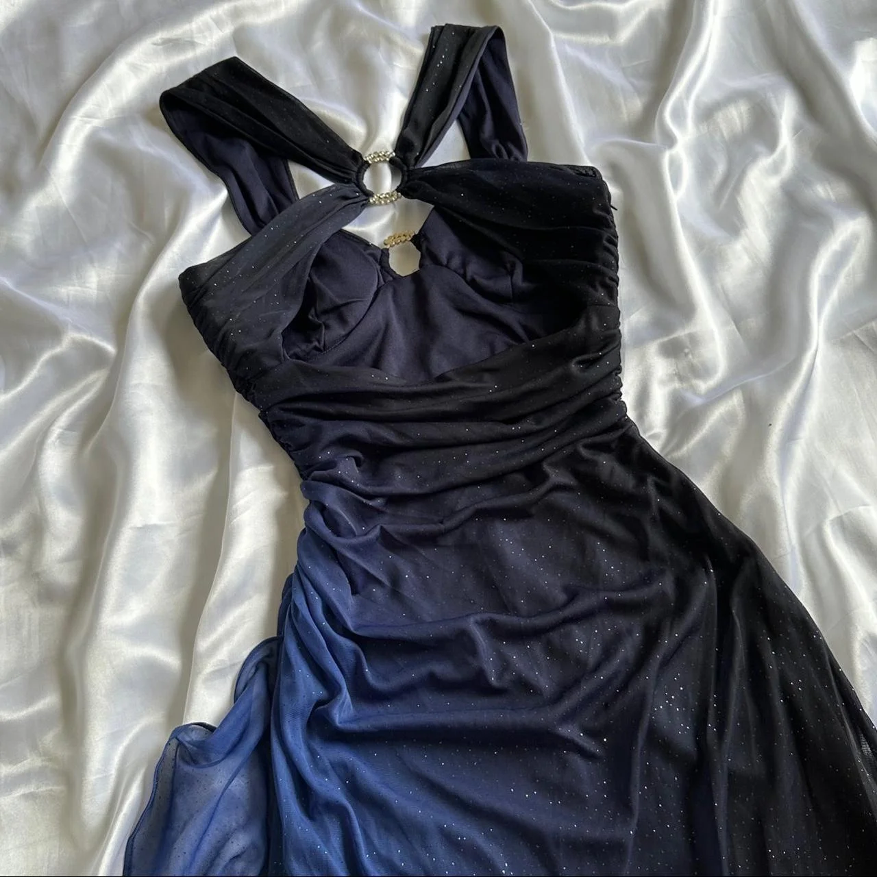 Robe de bal vintage à bretelles, robe de soirée longue en mousseline MD7414