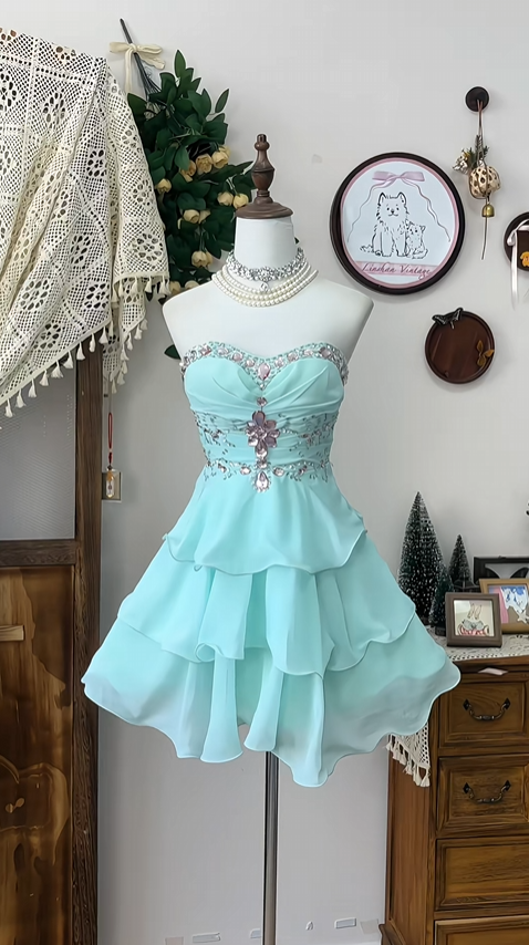 Robe de soirée élégante en mousseline de soie, coupe trapèze, décolleté en cœur, motif perlé, sans bretelles, style vintage, D1648
