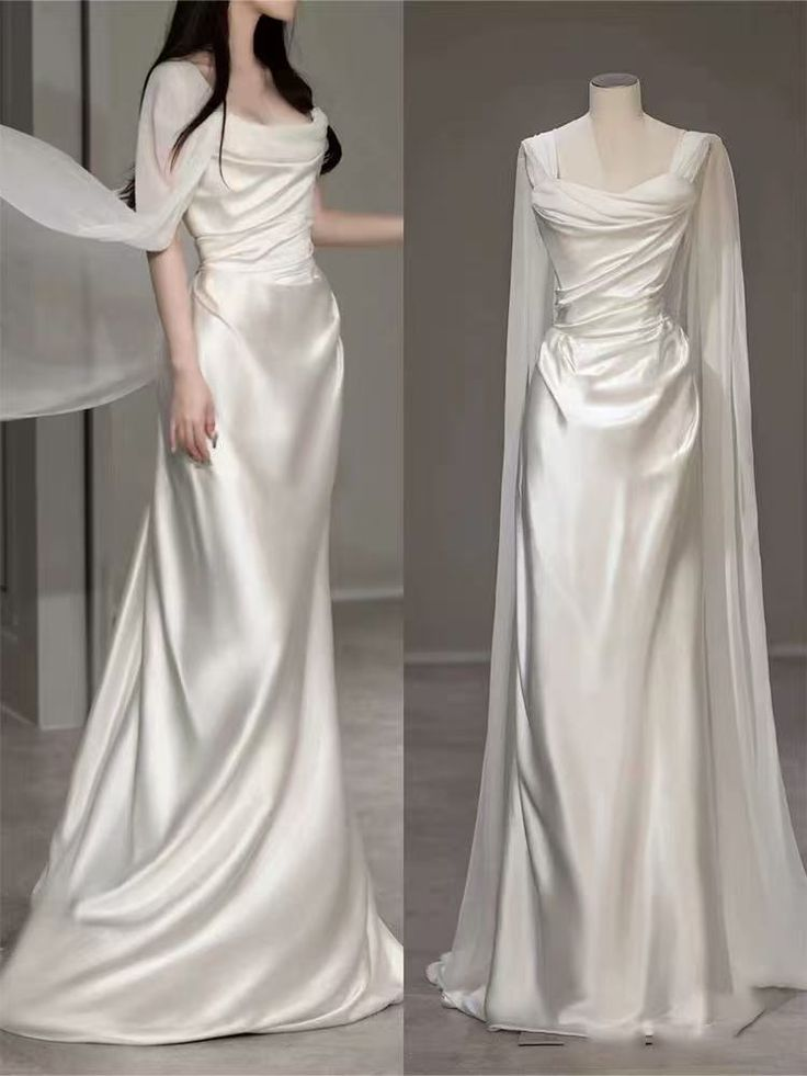 Robe de mariée élégante en satin blanc à bretelles plissées, robe de soirée MD7211