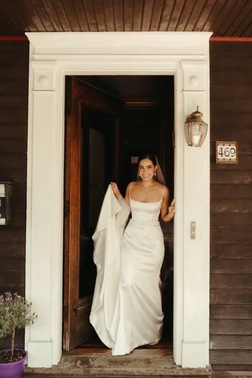 Robe de soirée longue en satin blanc à bretelles spaghetti, robe de mariée légère MD7404
