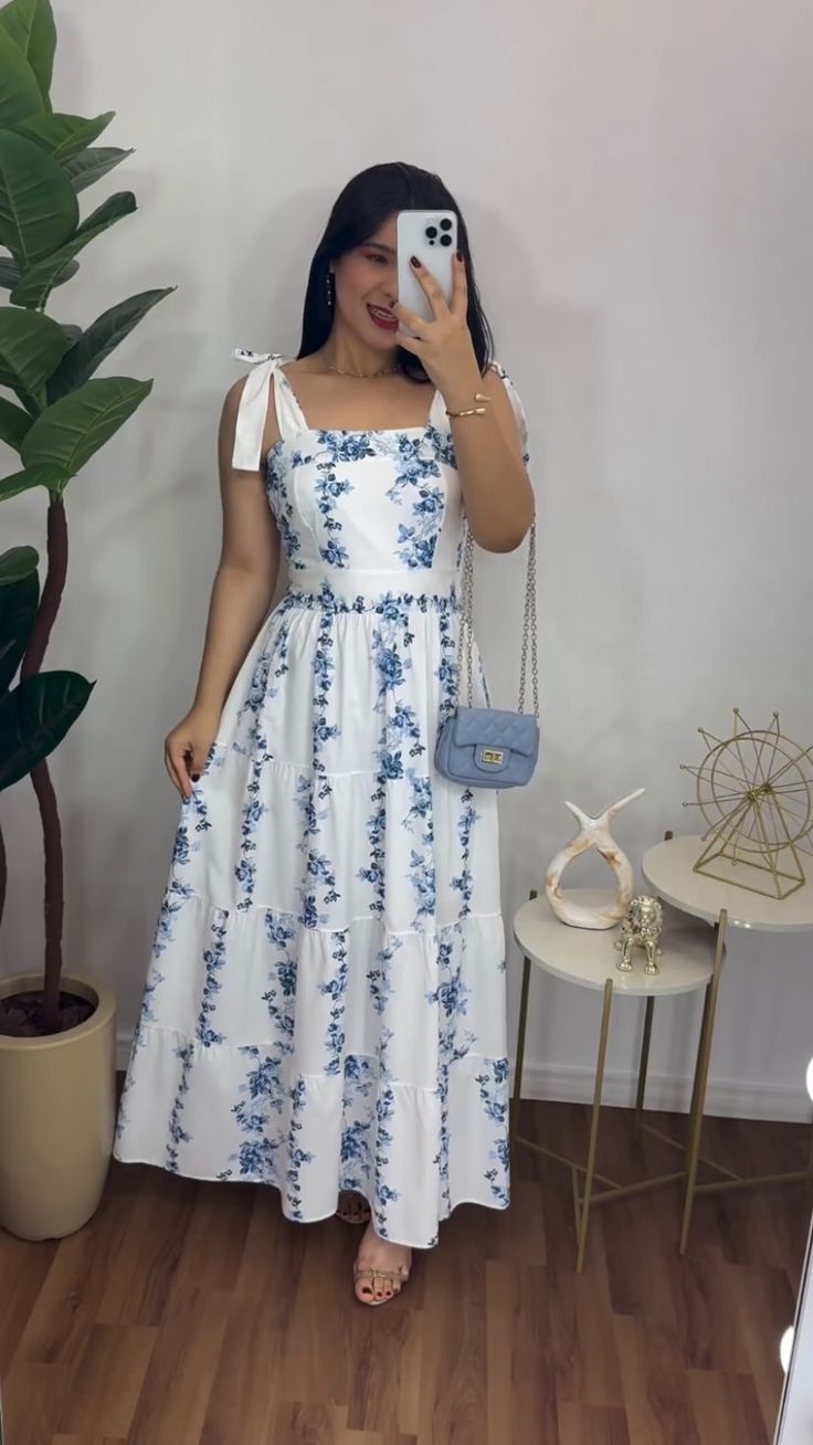 Robe longue de soirée à bretelles blanches, coupe trapèze, motif floral, D204