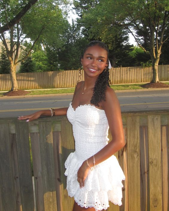 Robe de soirée courte blanche à col en cœur et coupe trapèze MD7315