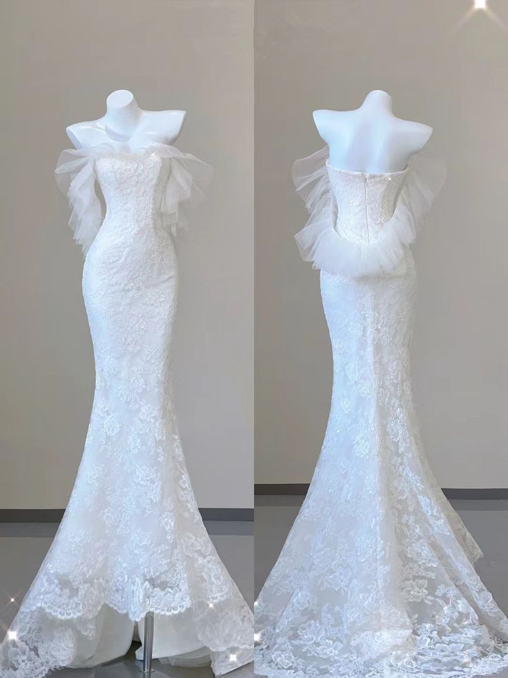 Robe de mariée sirène blanche en dentelle, décolleté en cœur, tenue d'anniversaire, MD7458