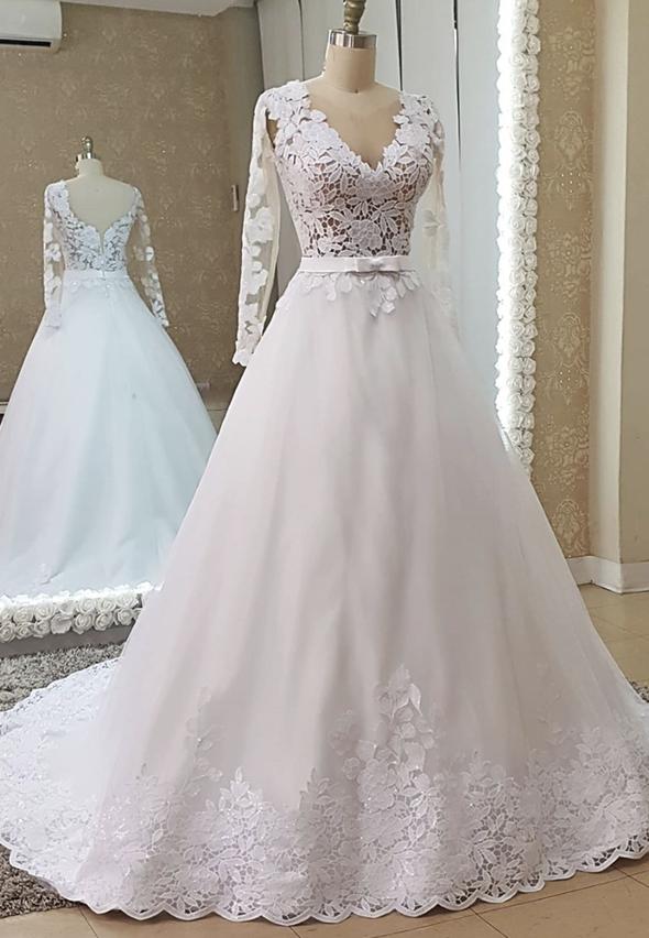 Robe de soirée longue en tulle et dentelle blanche M869