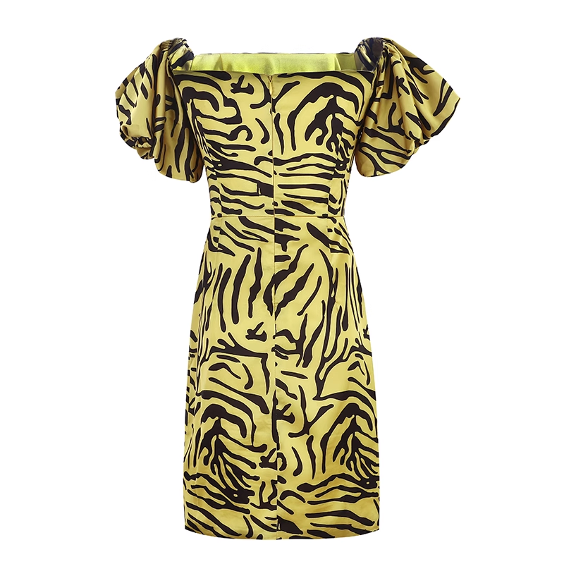 Robe fourreau jaune à imprimé léopard et épaules dénudées, D1415