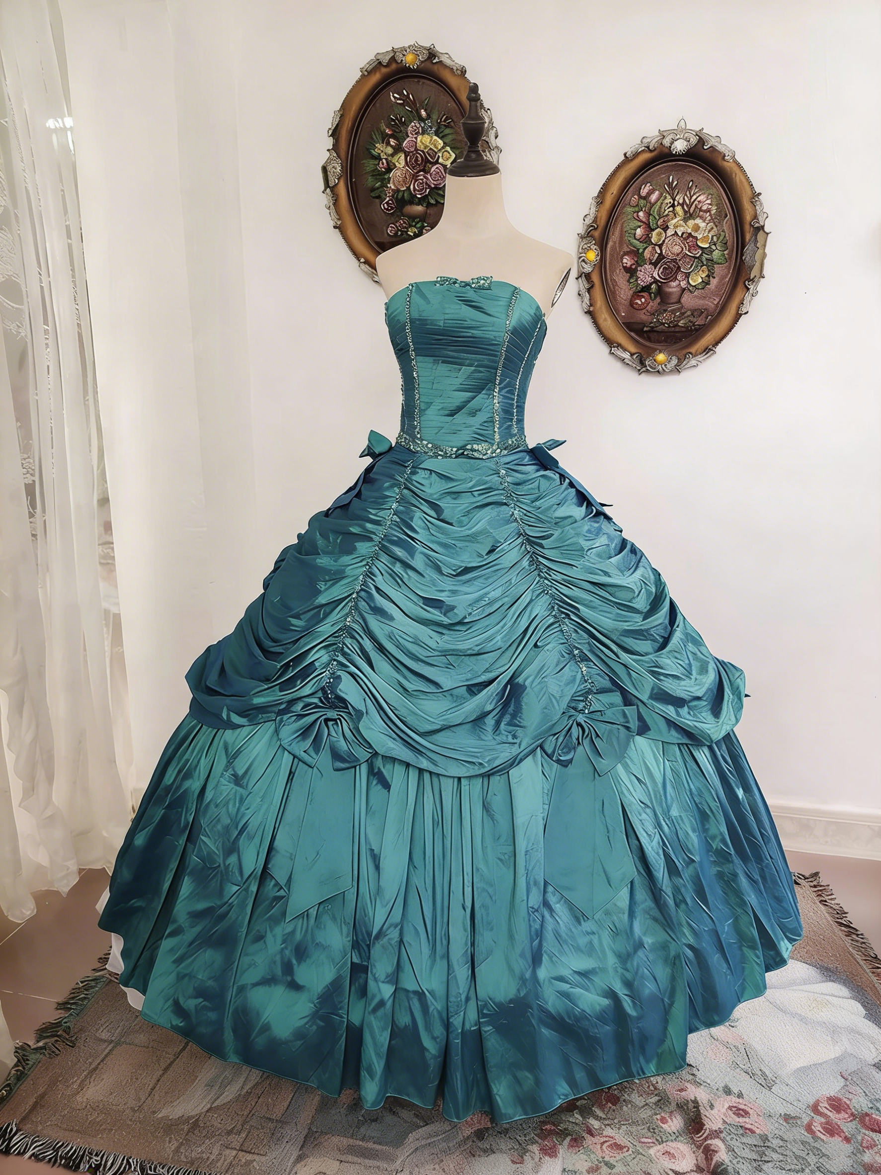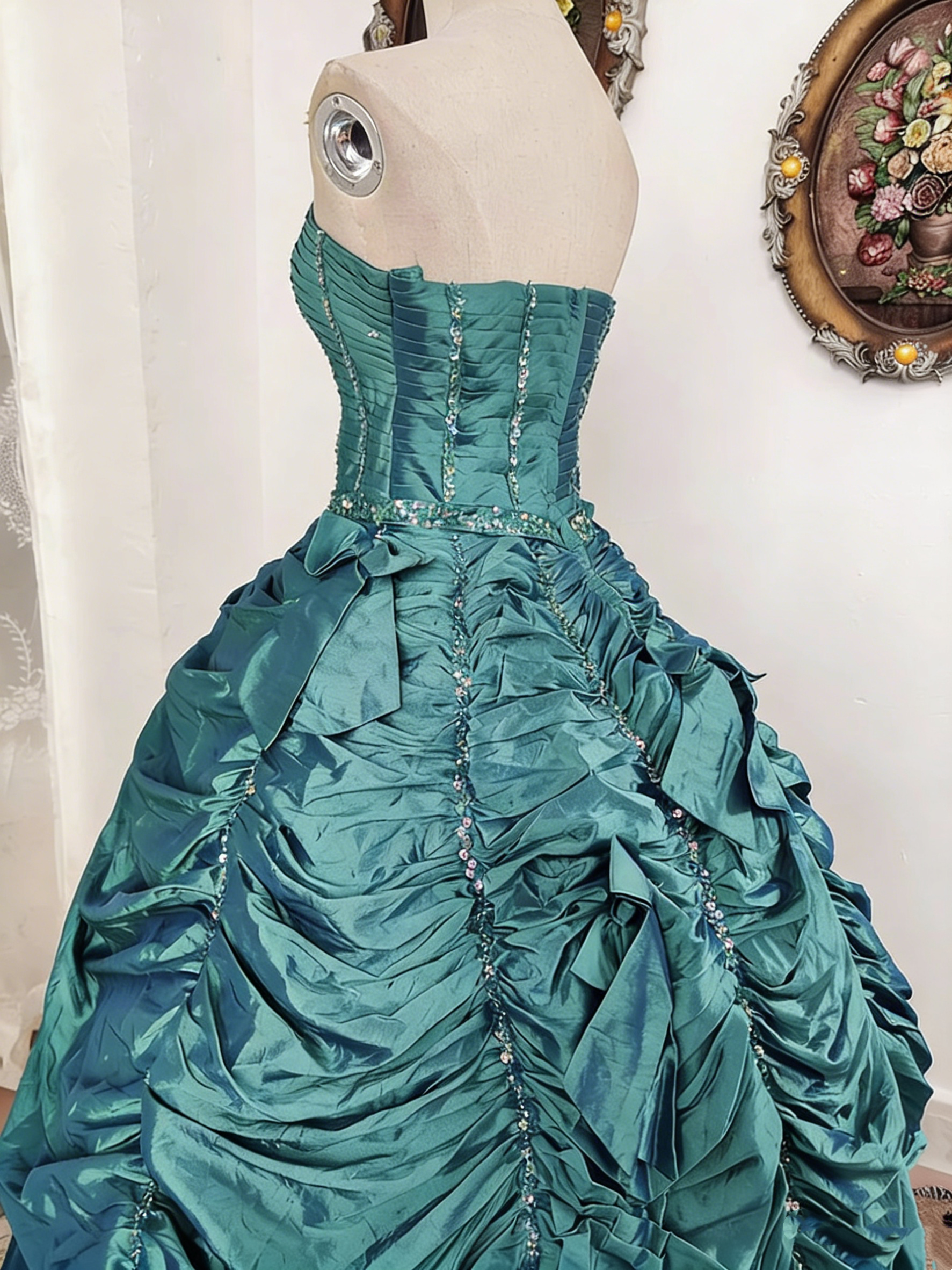 Beauty Prom Dress Strapless Pleated Ball Gown Evening Dress Quinceanera Dress Birthday Party Dress D4098