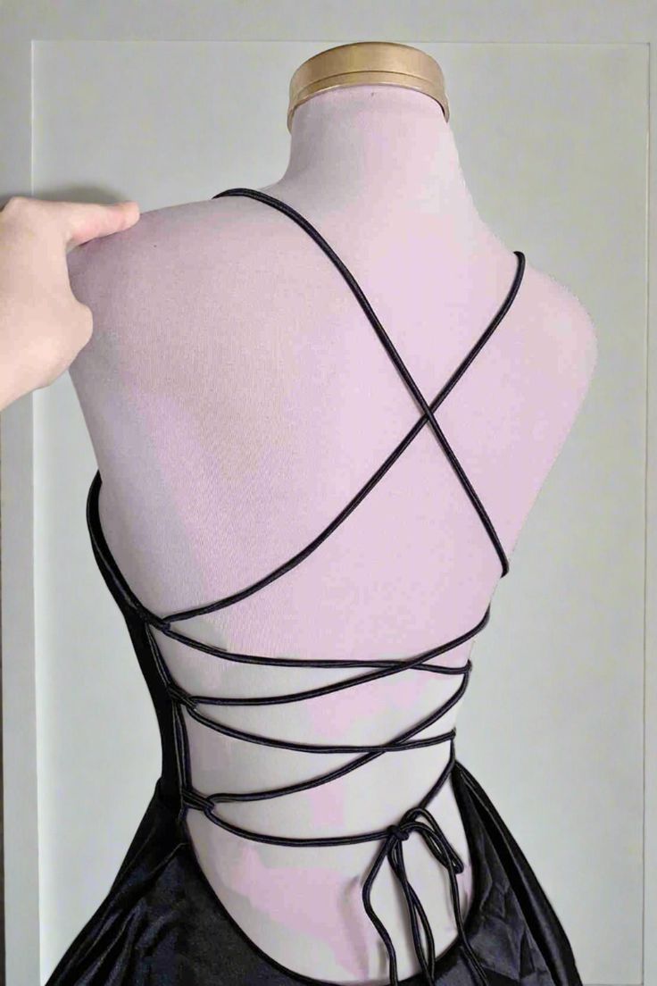 Black Straps A-Line Satin Simple Homecoming Dress Mini Birthday Outfits, D161