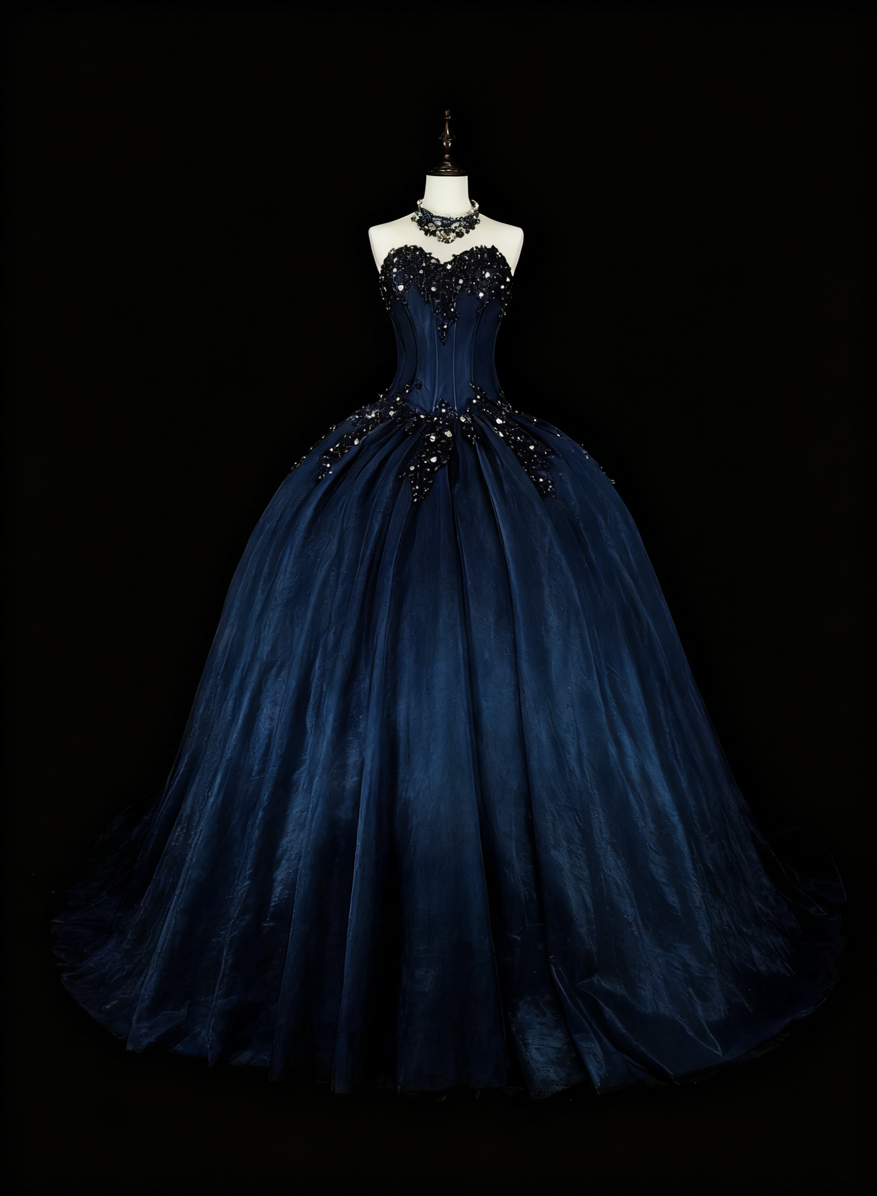 Charming Prom Dress Dark Blue Sweetheart Pleated Ball Gown Evening Dress Sweet 16 Outfits D3879