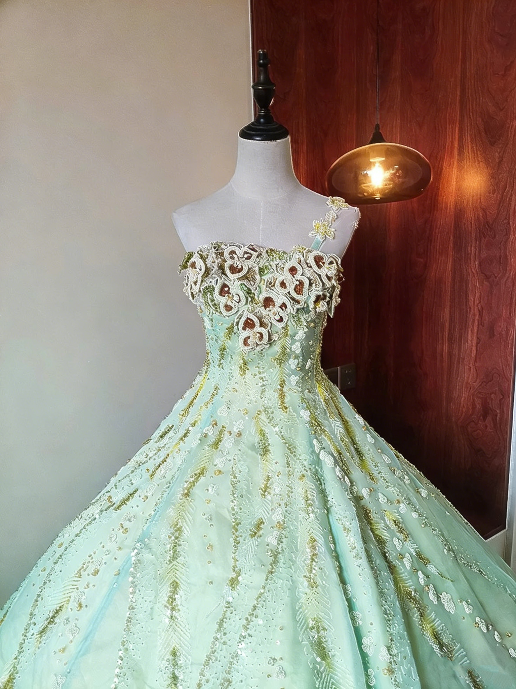 Charming Prom Dress One Shoulder Pleated Tulle Ball Gown Evening Dress Quinceanera Dress Birthday Party Outfits D4087