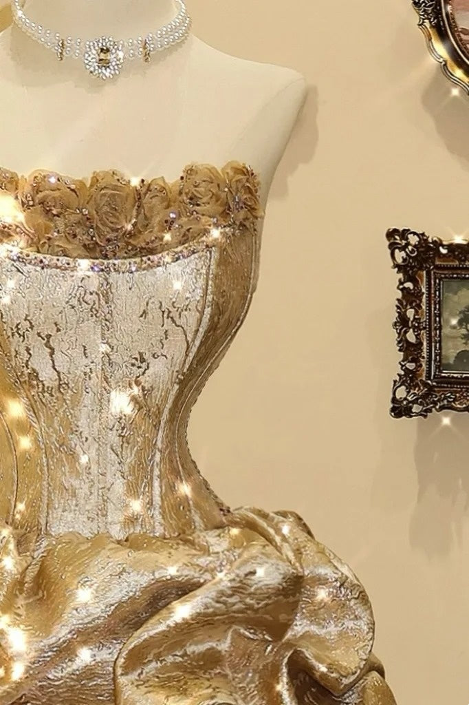 Charming Prom Dress Strapless Pleated Flower Evening Dress Gala Dress D3084