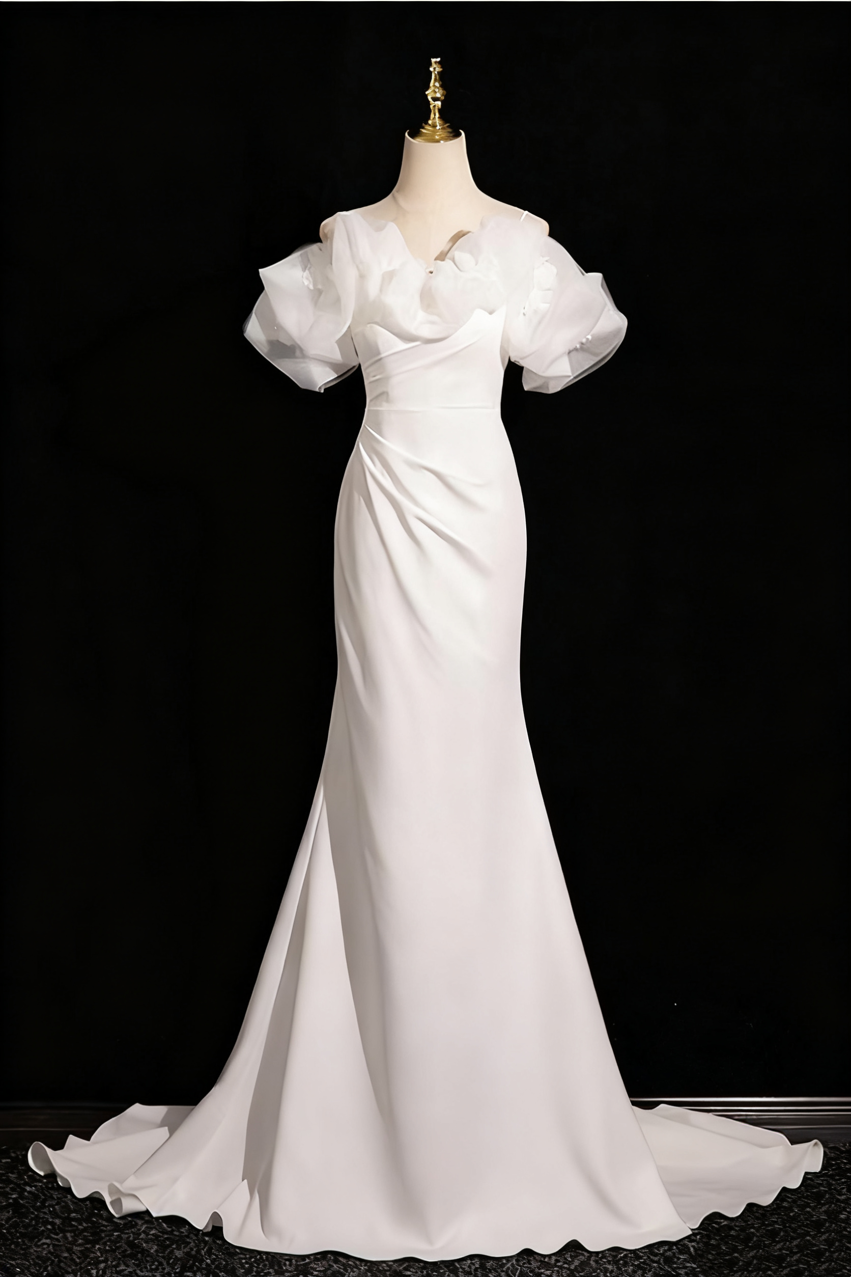 Charming Wedding Dress Off Shoulder Ruffle Pleated Mermaid Wedding Dress D3292