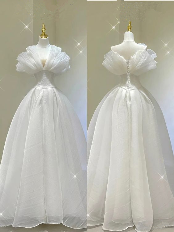 Cute A-Line Strapless White Chiffon Long Party Dress Wedding Gown MD7512