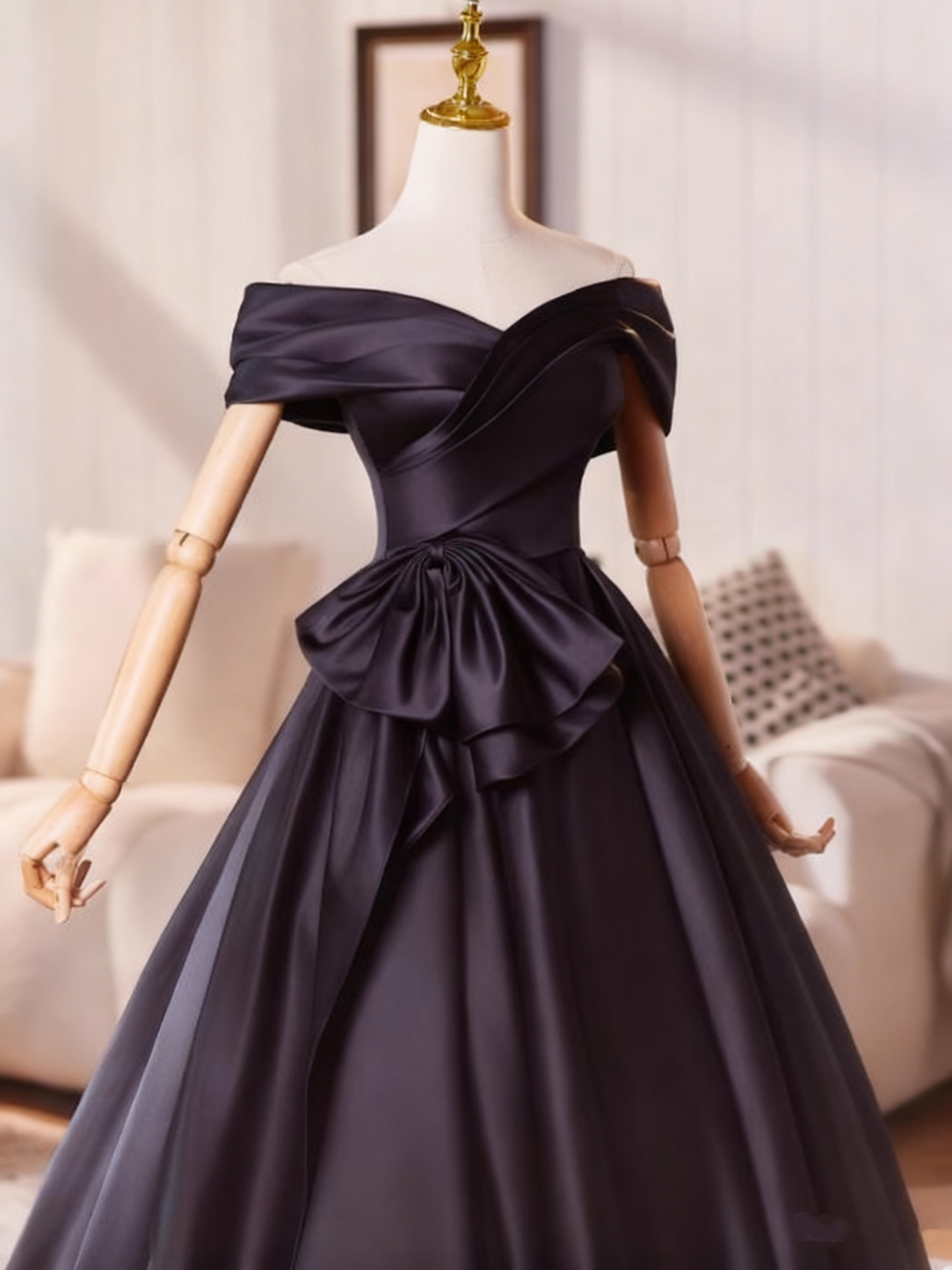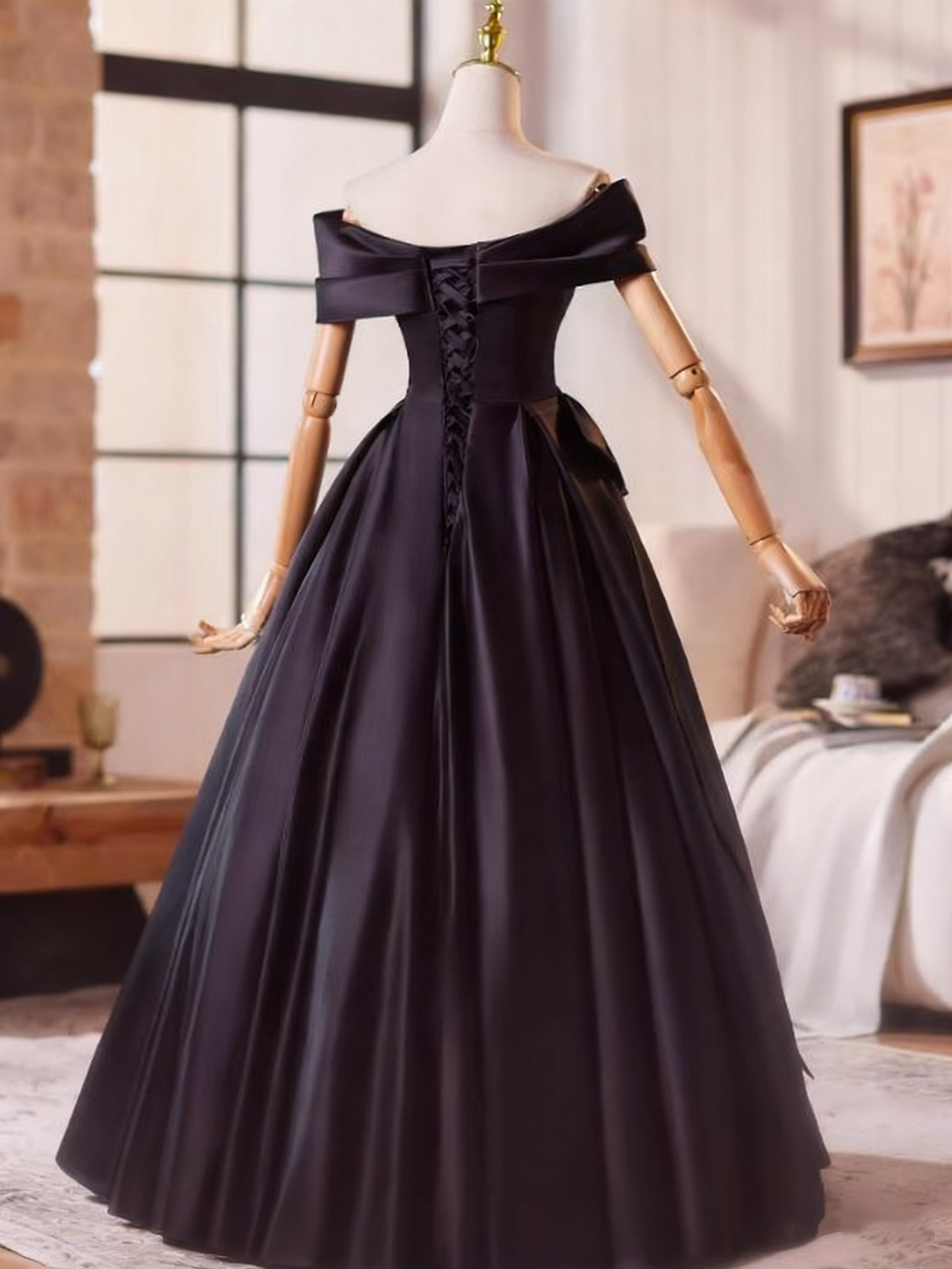 Elegant Prom Dress Black Off Shoulder Pleated Ball Gown Evening Dress D3759