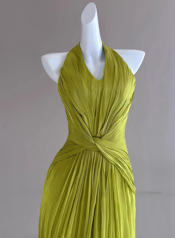 Elegant Prom Dress Halter Pleated Long Evening Dress Gala Dress Cocktail Dress D3917