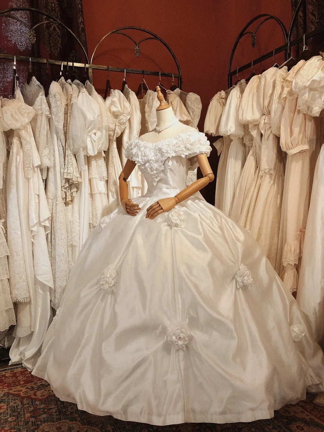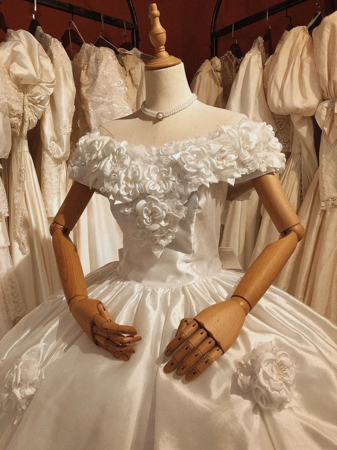 Elegant Wedding Dress Off Shoulder Floral Pleated Wedding Dress D4390