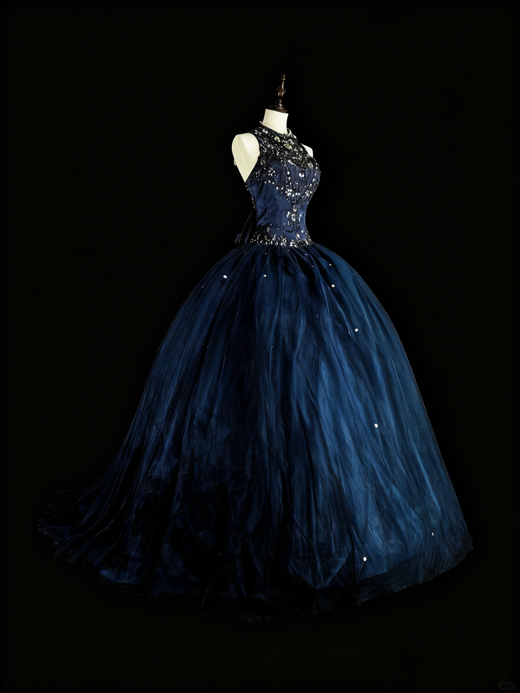 Gorgeous Prom Dress Dark Blue Backless Tulle Ball Gown Evening Dress Birthday Dress D3882