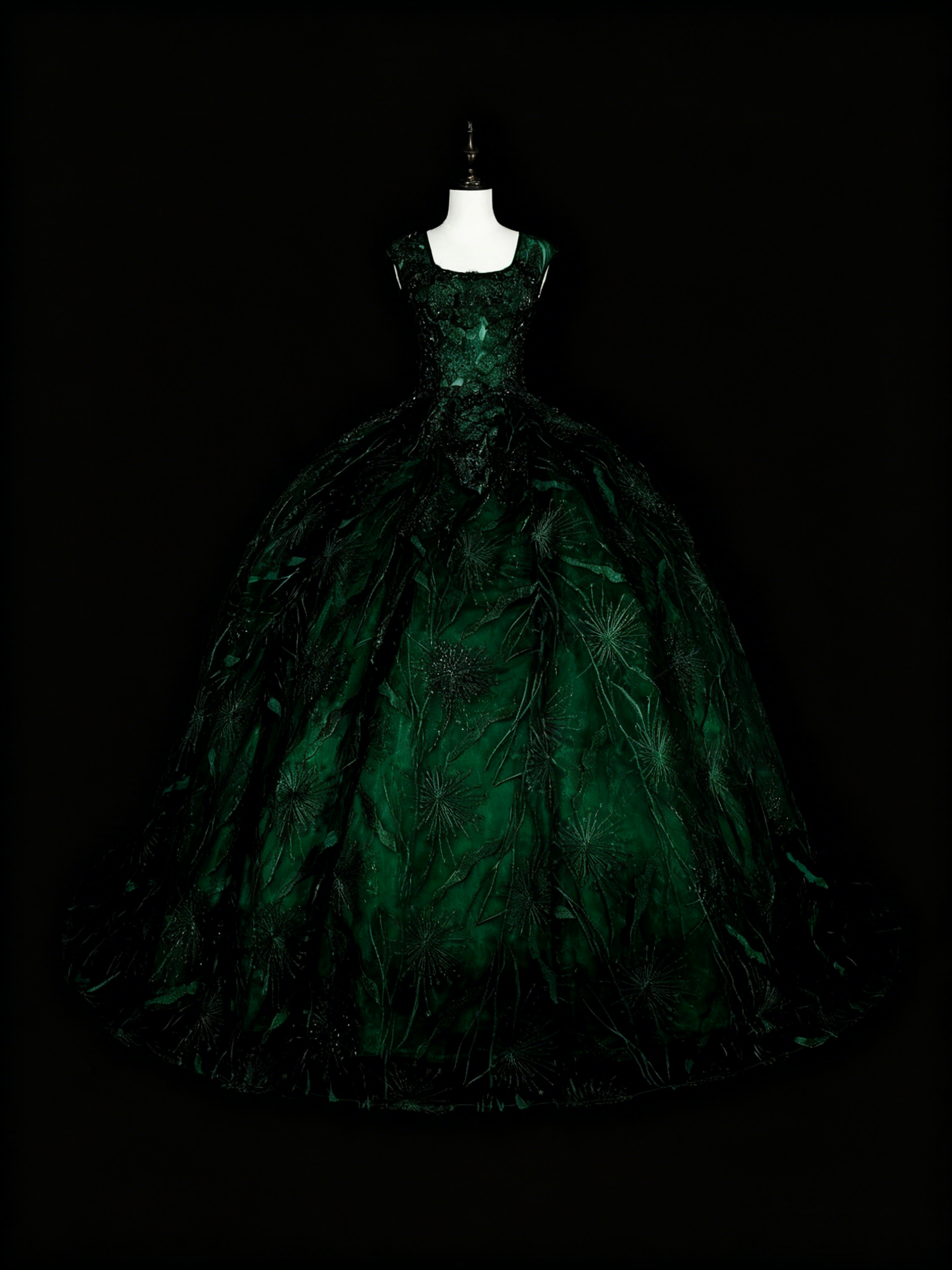 Gorgeous Prom Dress Dark Green Square Neck Pleated Tulle Ball Gown Evening Dress Quinceanera Outfits D3877