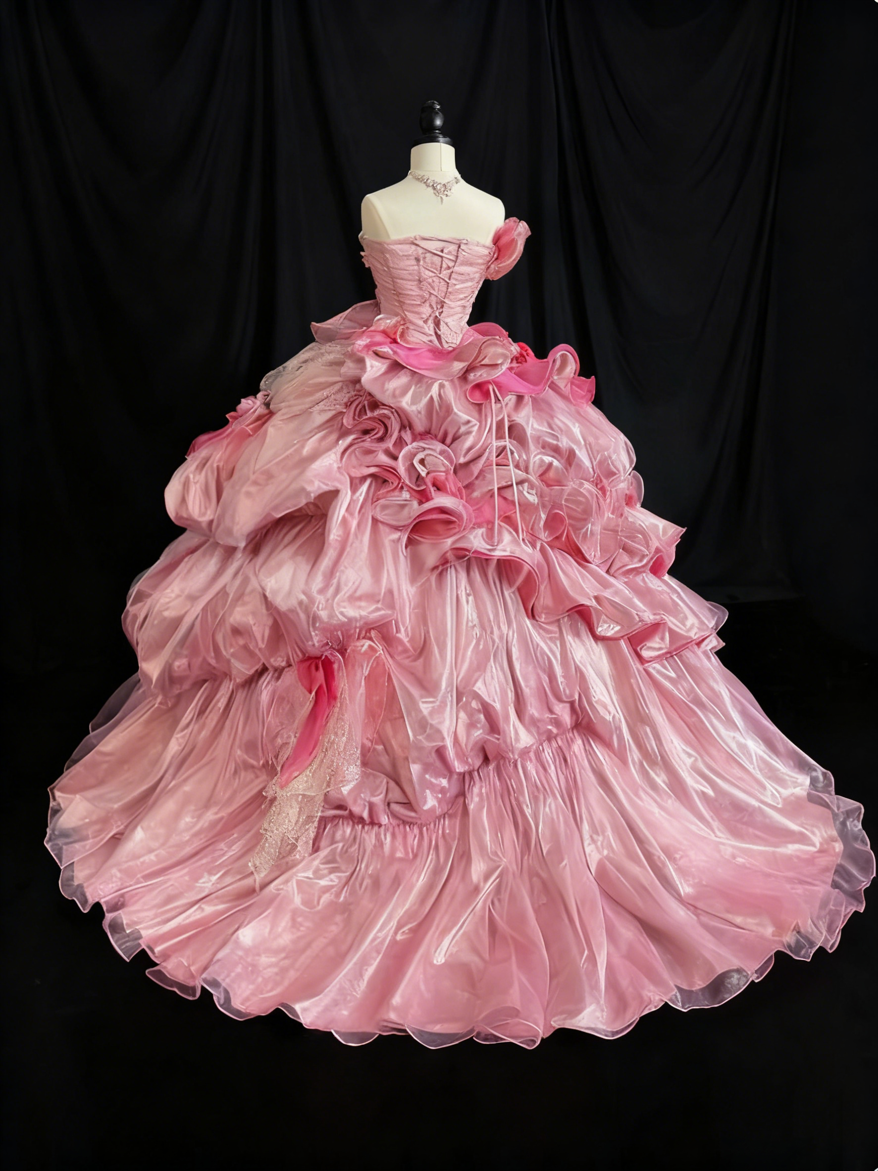 Gorgeous Prom Dress Strapless Ruffle Ball Gown Sweet 16 Dress Birthday Outfits D3802