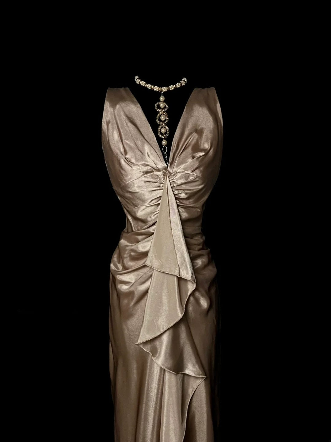 Gorgeous Prom Dress V-neck Pleated Long Prom Dress Evening Dress Birthday Party Dress D3178