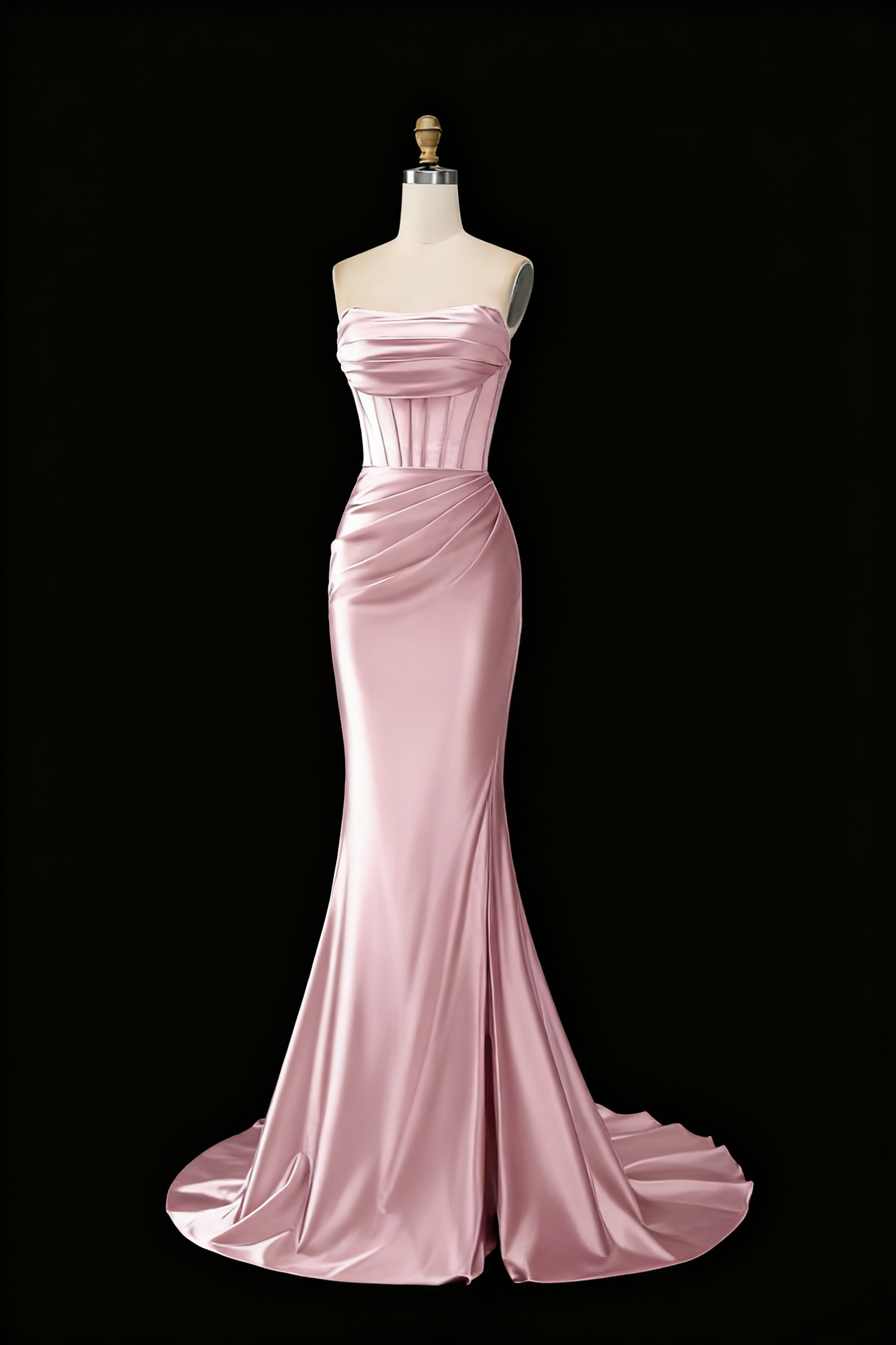 Light Pink Strapless Satin Black Girl Long Party Dress Birthday Outfits MD7772