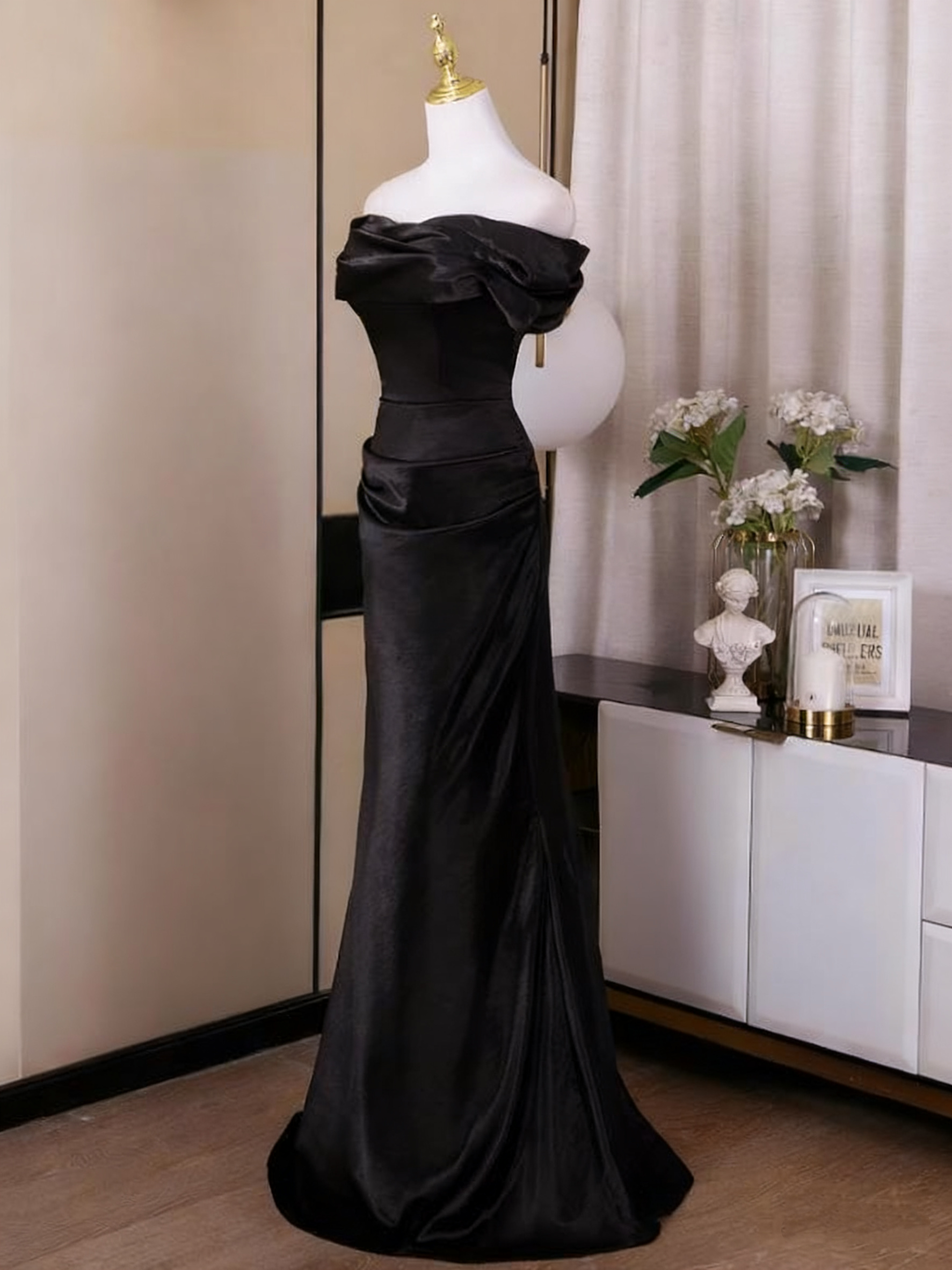 Minimalist Prom Dress Black Off Shoulder Pleated Mermaid Evening Dress Gala Dress D3756