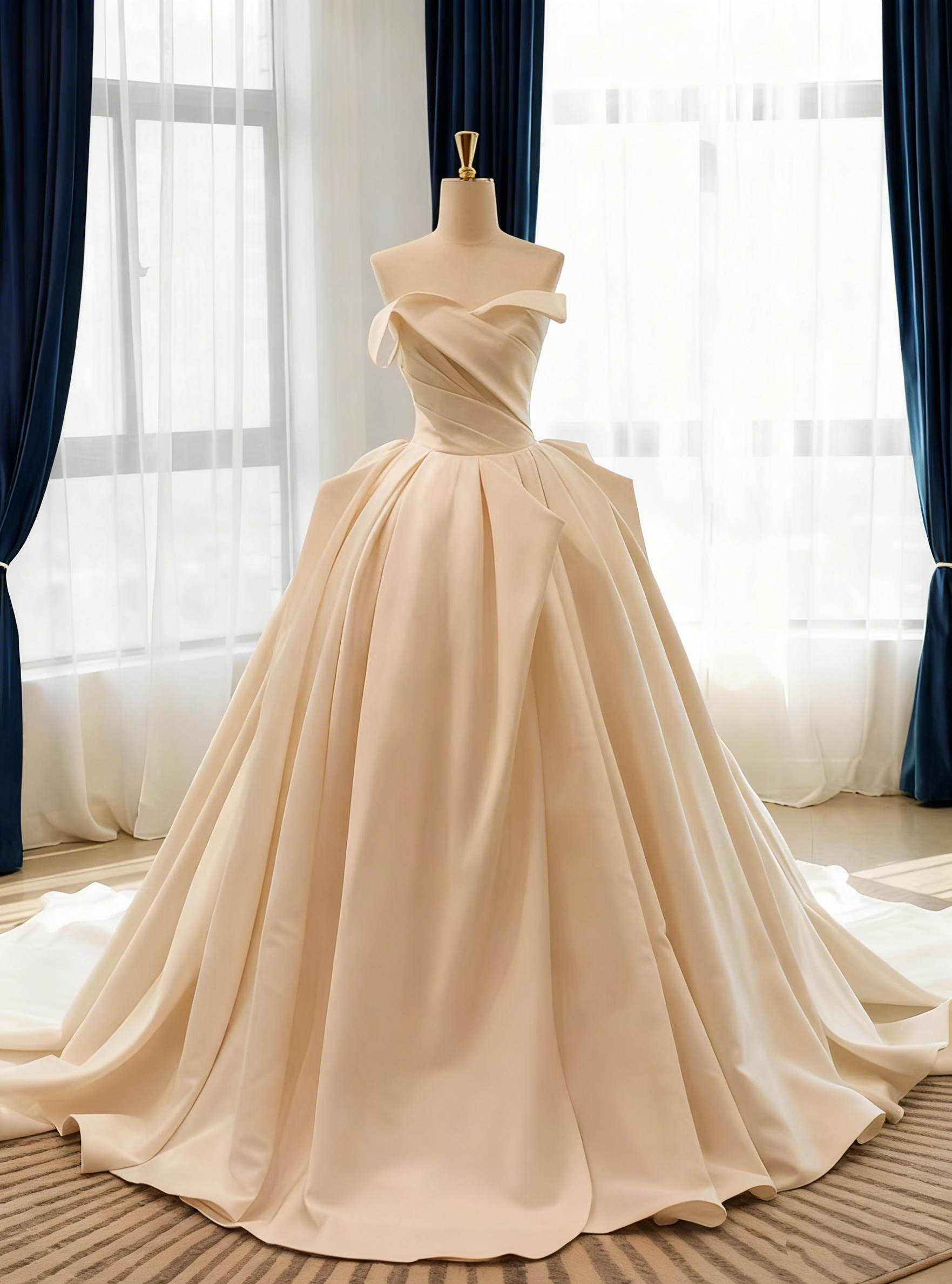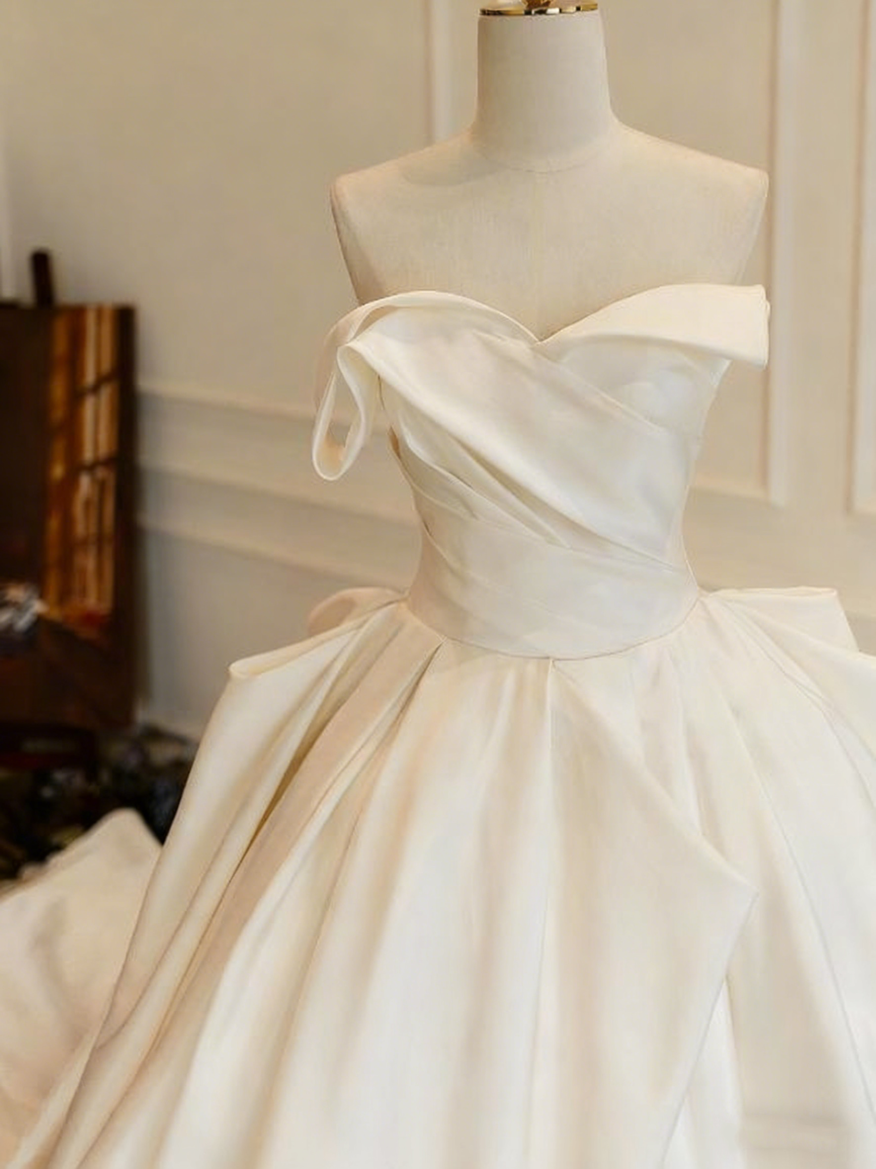 Minimalist Wedding Dress Asymmetrical Neck Pleated Wedding Dress D3807