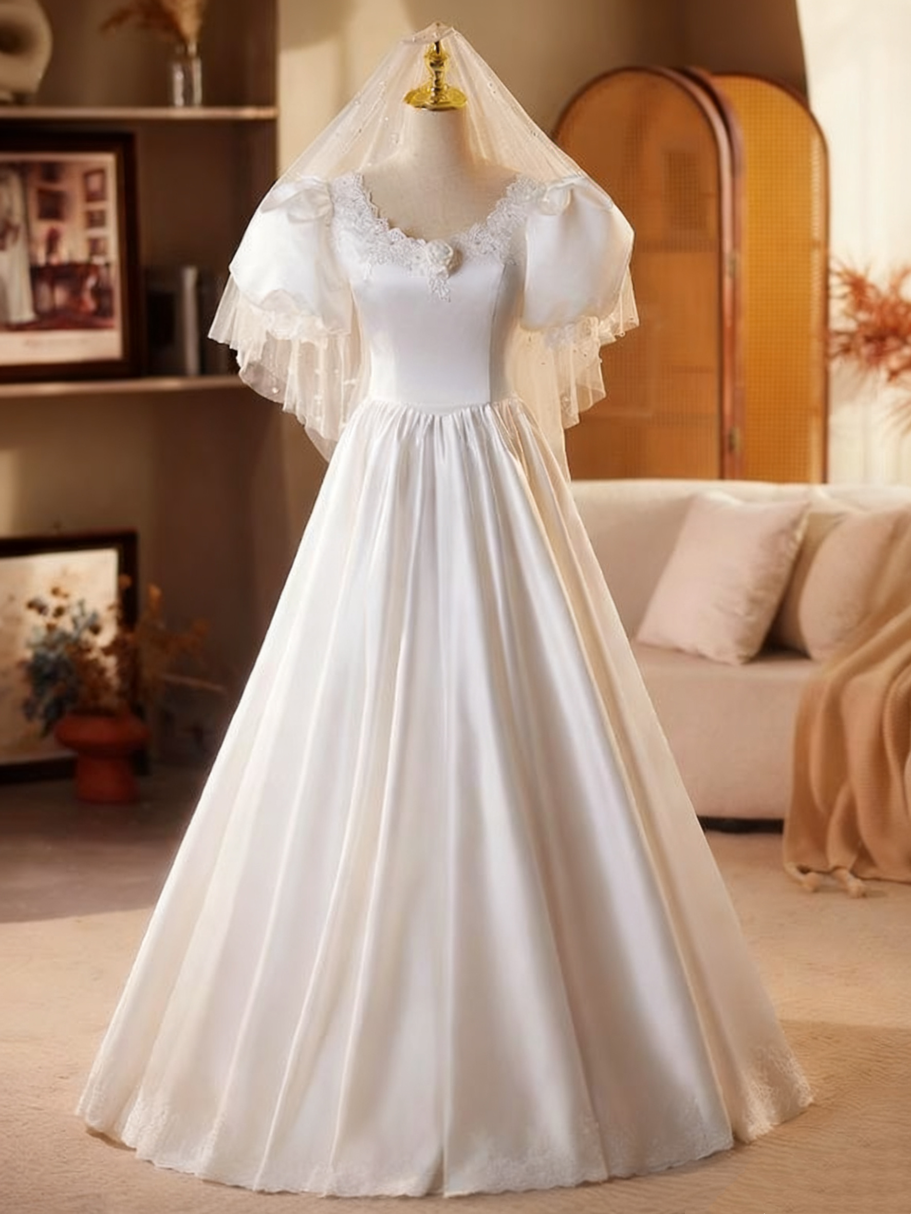Minimalist Wedding Dress Crew Neck Pleated Wedding Dress D3740