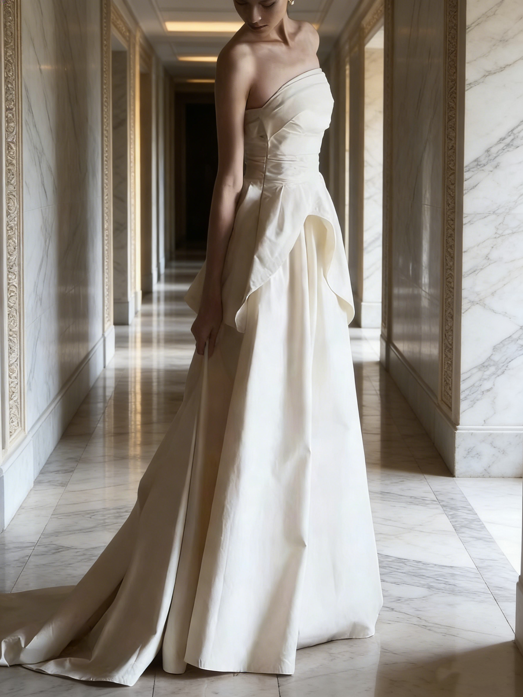 Minimalist Wedding Dress Strapless Pleated Wedding Dress D4321