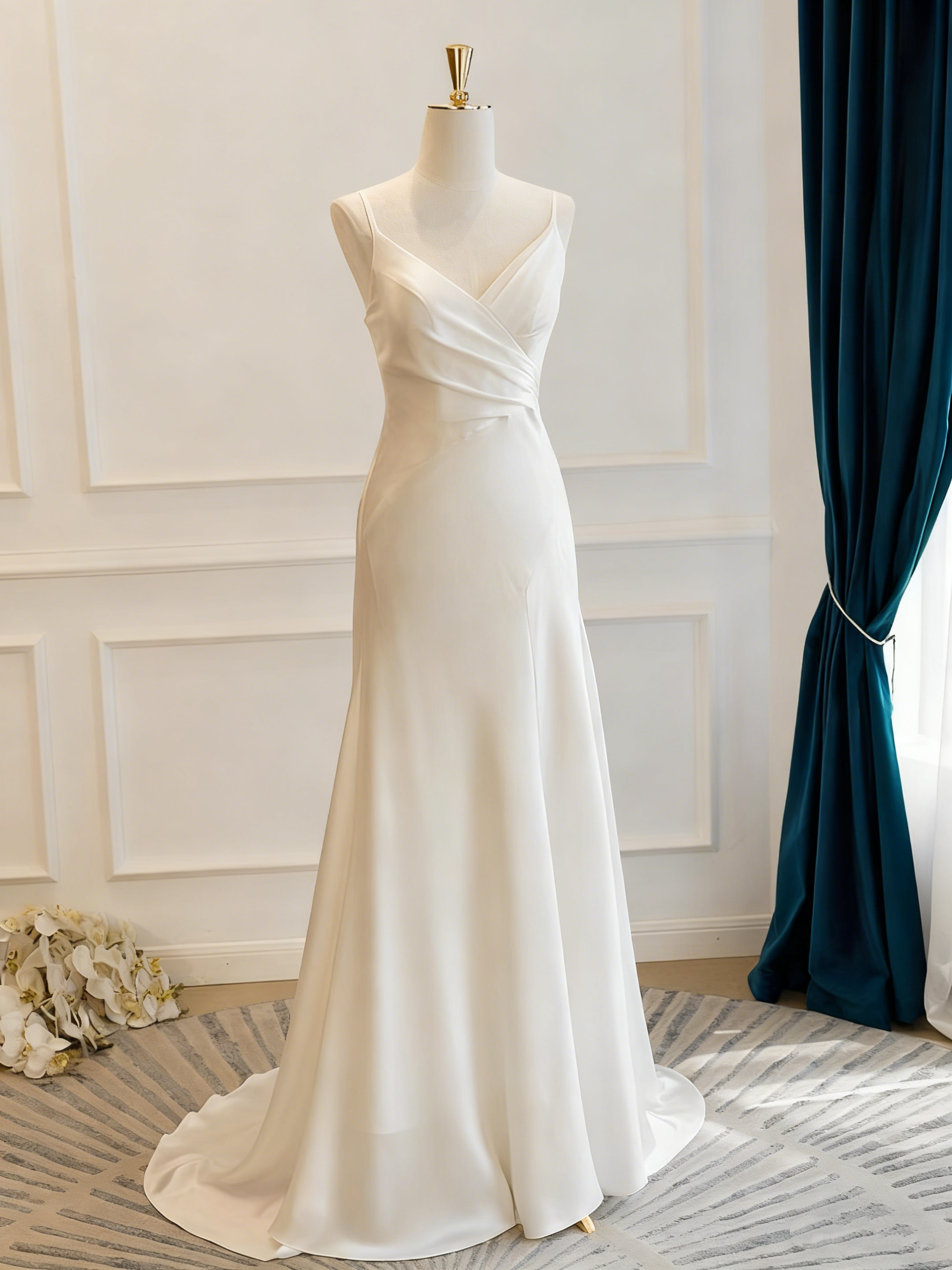 Minimalist Wedding Dress V-neck Pleated Wedding Dress D3810
