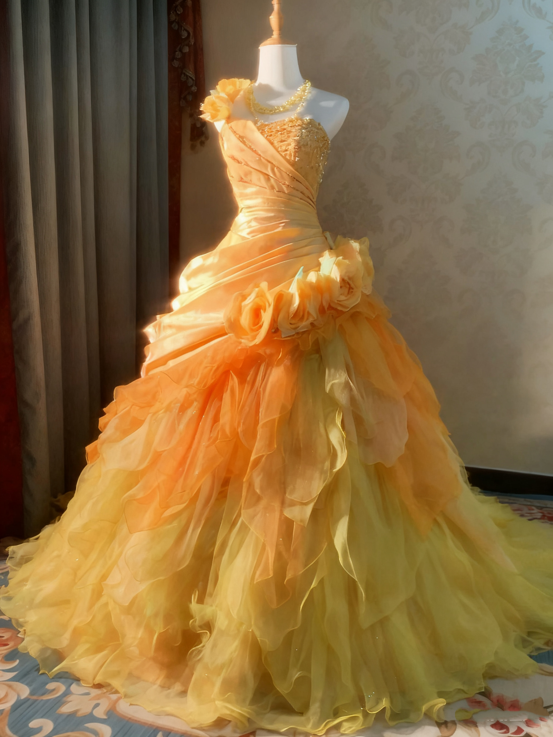 New Arrival Prom Dress One Shoulder Pleated Ruffle Ball Gown Quinceanera Dress D3763