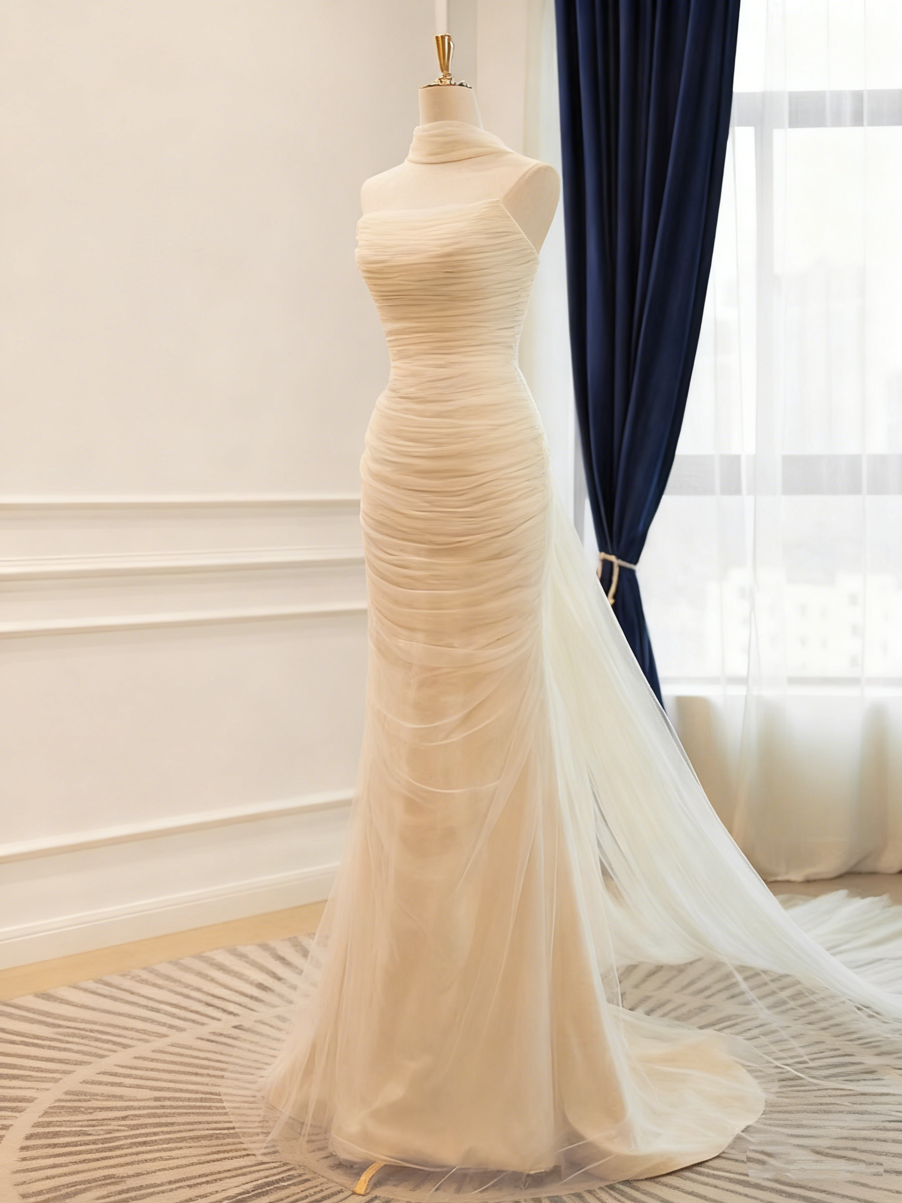 New Arrival Wedding Dress Strapless Tulle Pleated Mermaid Wedding Dress D3819