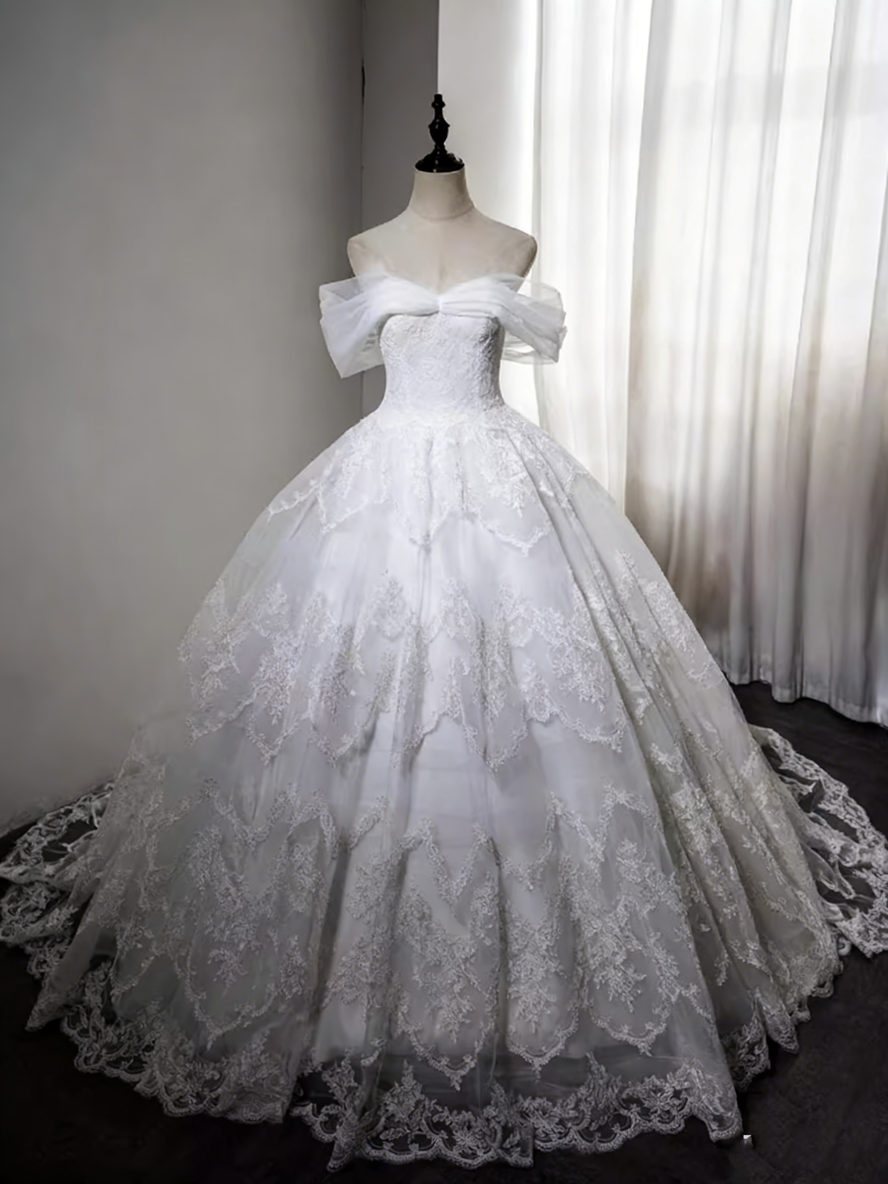 New Design Wedding Dress Off Shoulder Tulle Lace Wedding Dress D3897