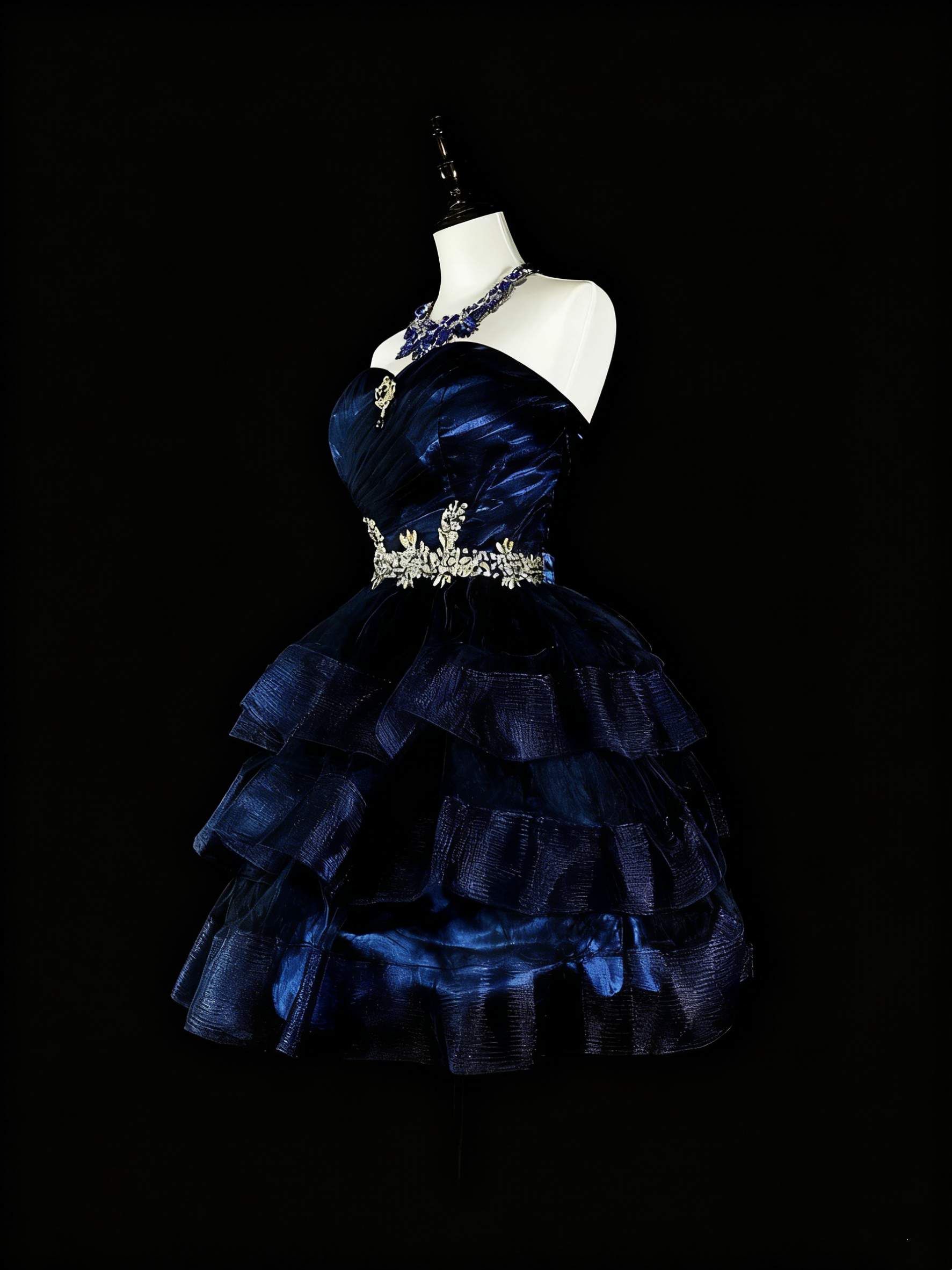 Newest Homecoming Dress Dark Blue Sweetheart Pleated Tiered Short Prom Dress Evening Dress Birthday Party Outfits D3895