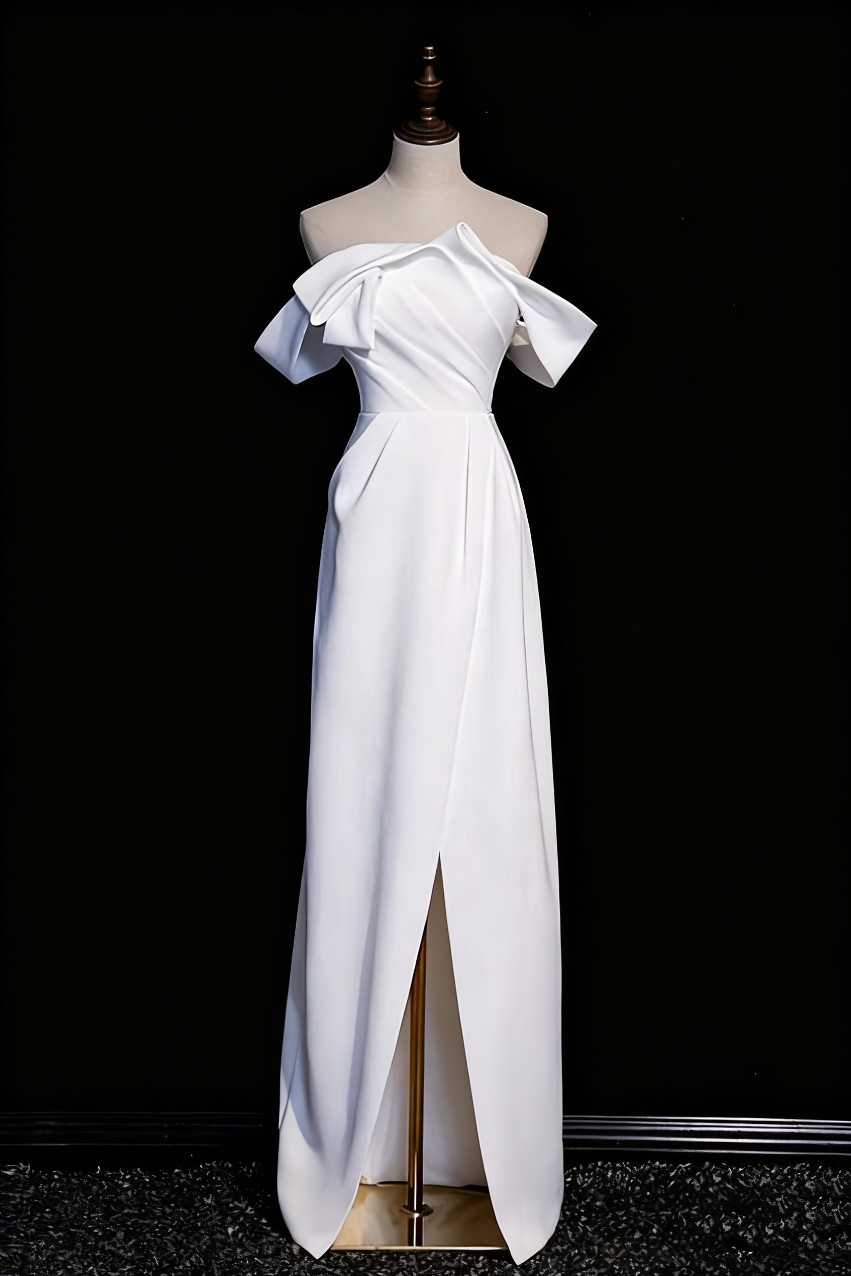 Newest Wedding Dress A Line Off Shoulder Pleated Slit Wedding Dress D3295