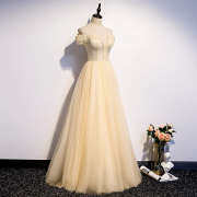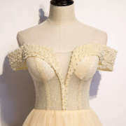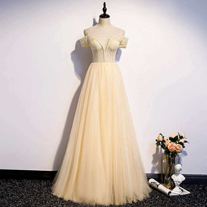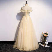 Off the Shoulder Champagne Long Formal Dress with Beads M992