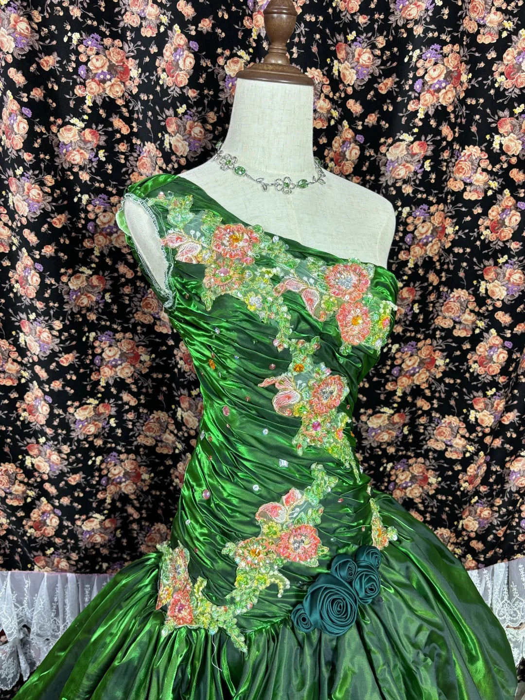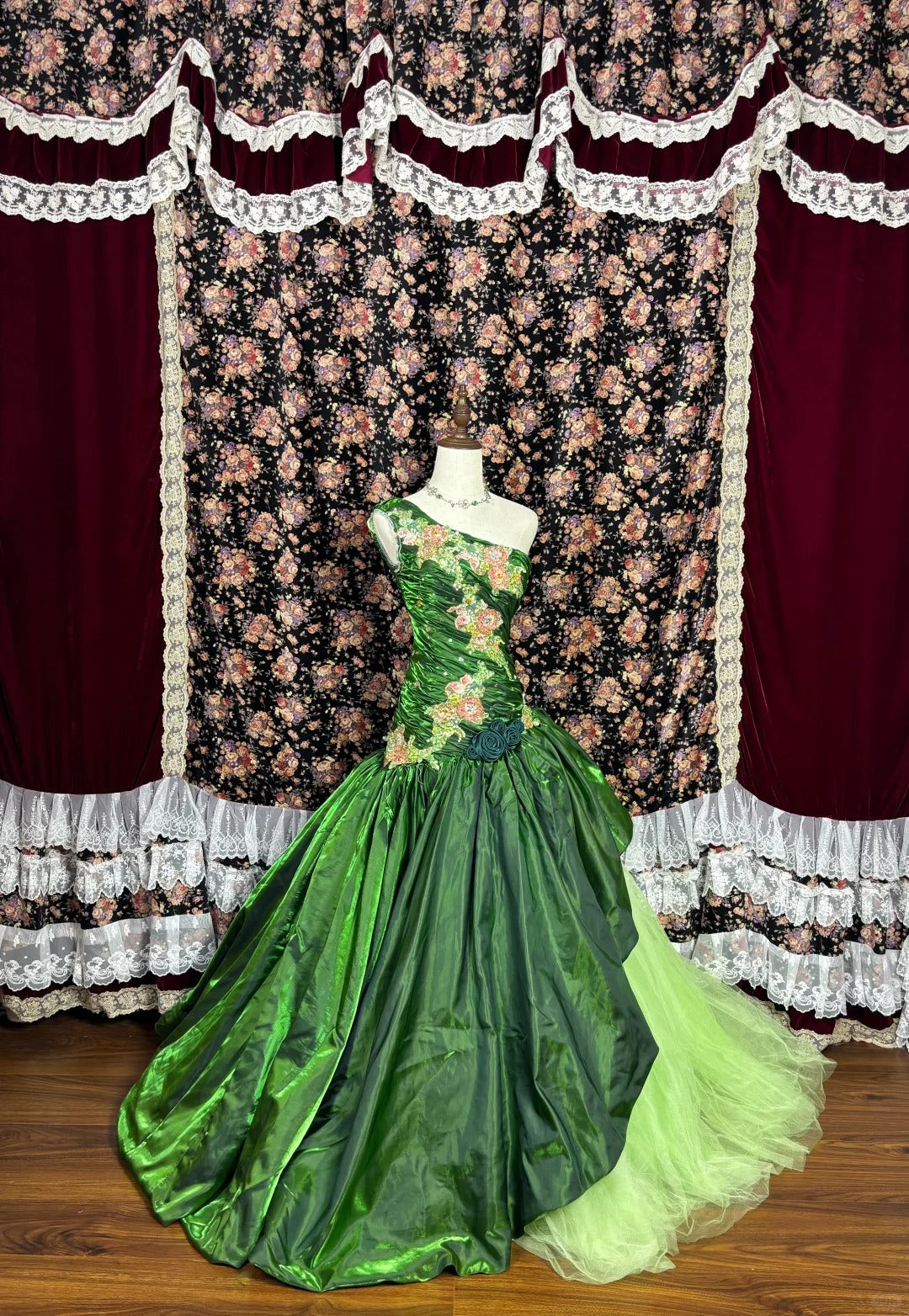 Pretty Asymmetrical Shoulder Appliques Pleated Long Prom Dress Evening Dress Party Dress D2232