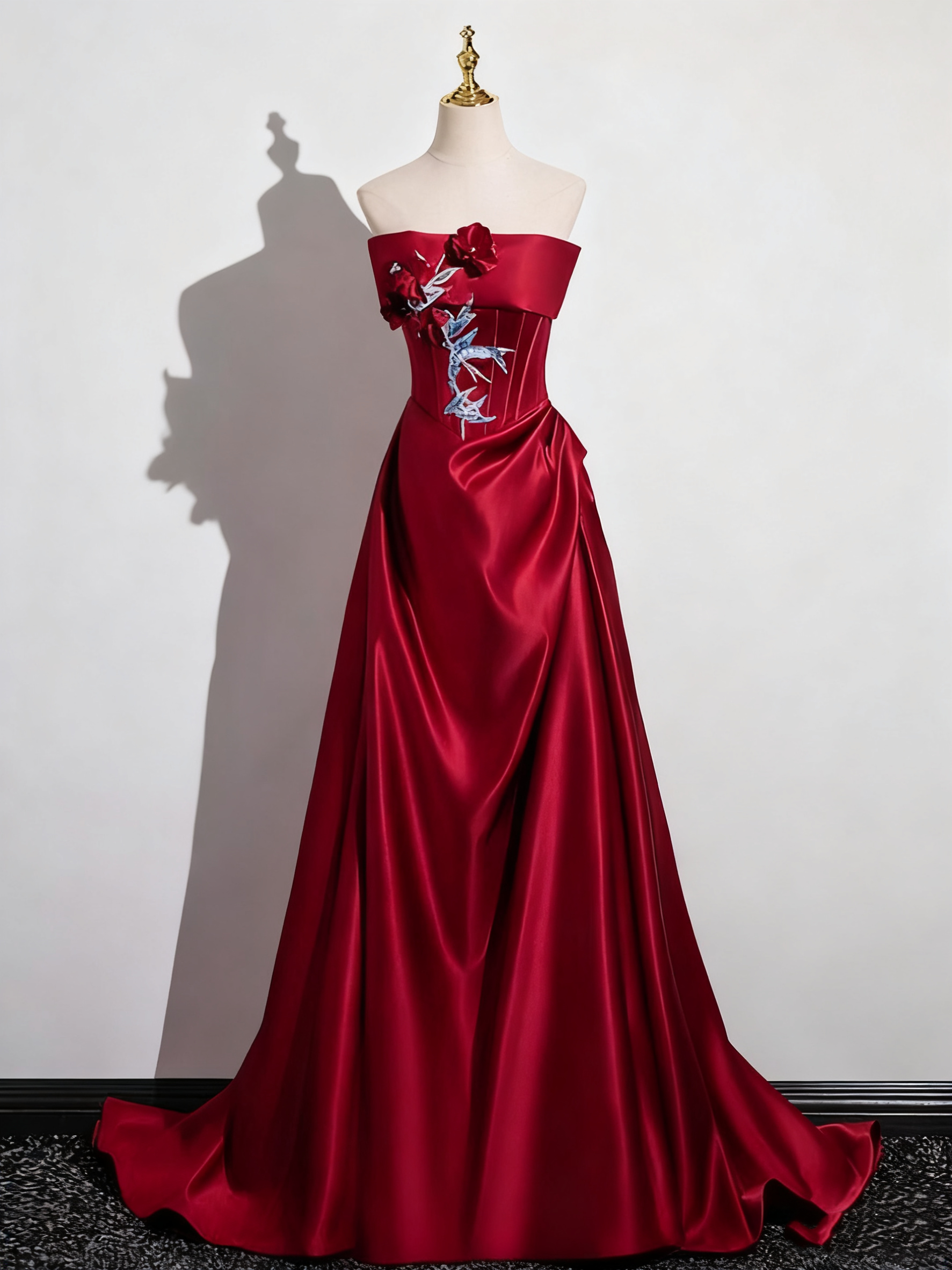 Pretty Prom Dress Wine Red A Line Strapless Pleated Prom Dress Evening Gown Gala Dress D3308