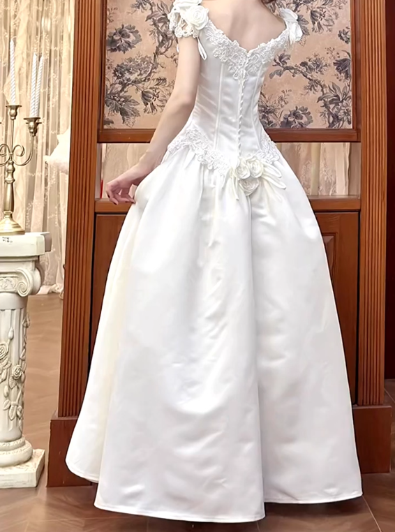Retro Wedding Dress Crew Neck Short Sleeves Wedding Dress D3867